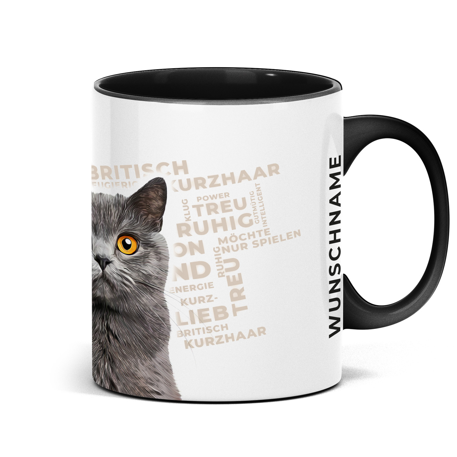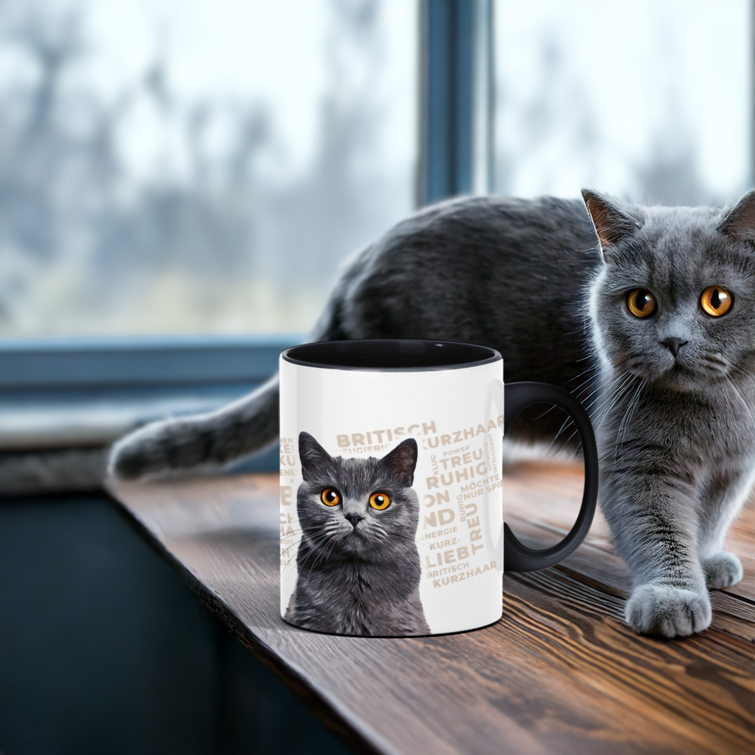 Personalisierte Katzen-Tasse Britische Kurzhaar – Geschenk für Katzenliebhaber – 330 ml – Spülmaschinenfest und optionaler Personalisierung. Spülmaschinen- und mikrowellengeeignet, langlebiger Druck. Made in Germany – ideal als individuelles Geschenk für jeden Katzenfan!