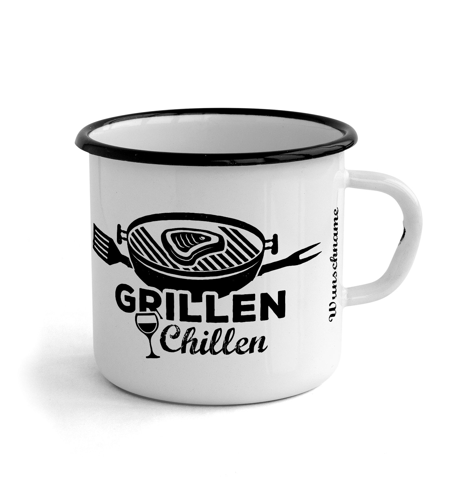 Emaille Becher Grillen&Chillen Wein auch mit Wunschnamen