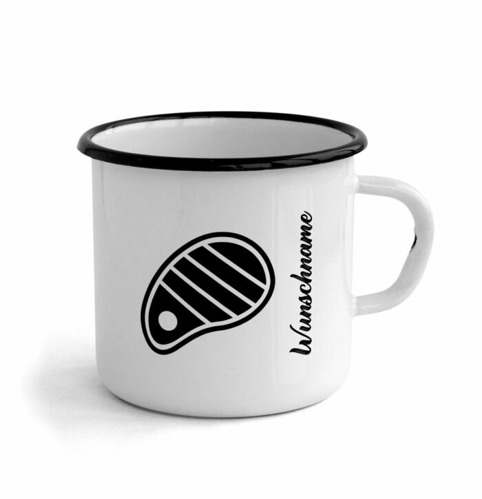 Emaille Becher Grillsteak auch mit Wunschnamen