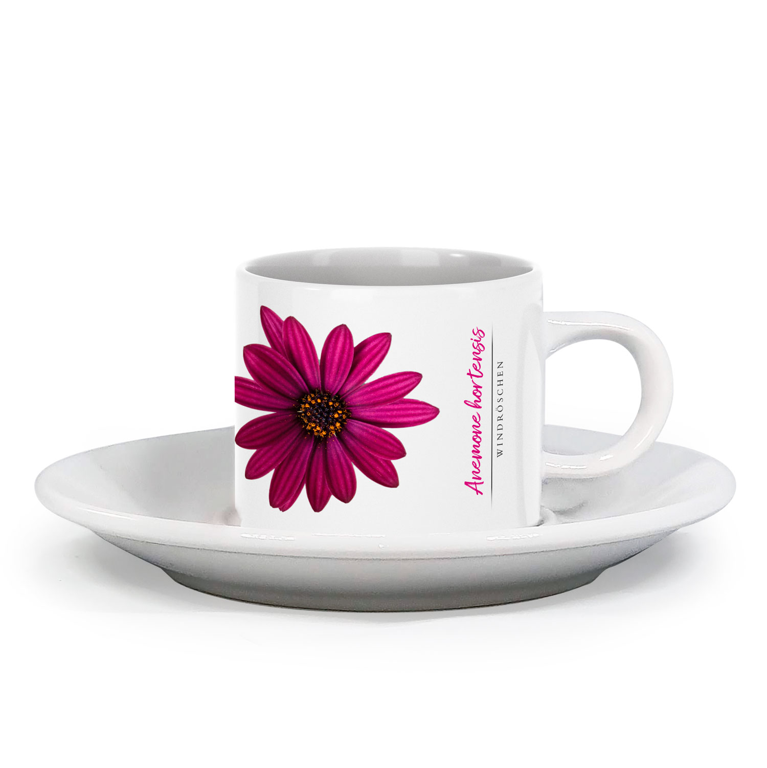 Espressotasse Anemone mit Unterteller in traumhafter Blumen Vintage-Optik.