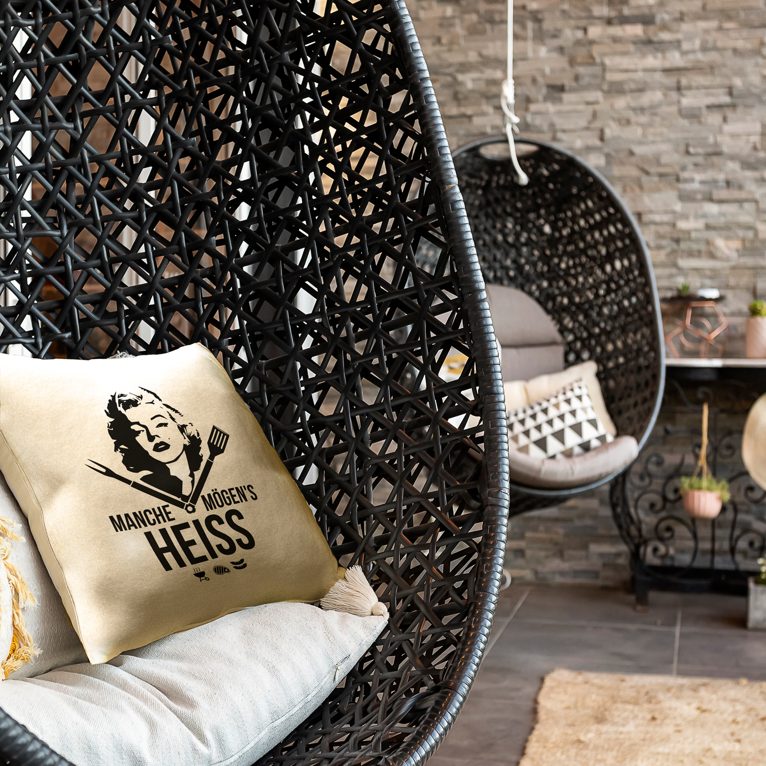 DEKOTIPP: Du kannst die Grillkissen auch mit anderen einfarbigen Basic-Kissen in unterschiedlichen Größen und Mustern ergänzen um ein gezieltes Highlight an deinem Grillplatz oder auf deiner Terrasse zu setzten.