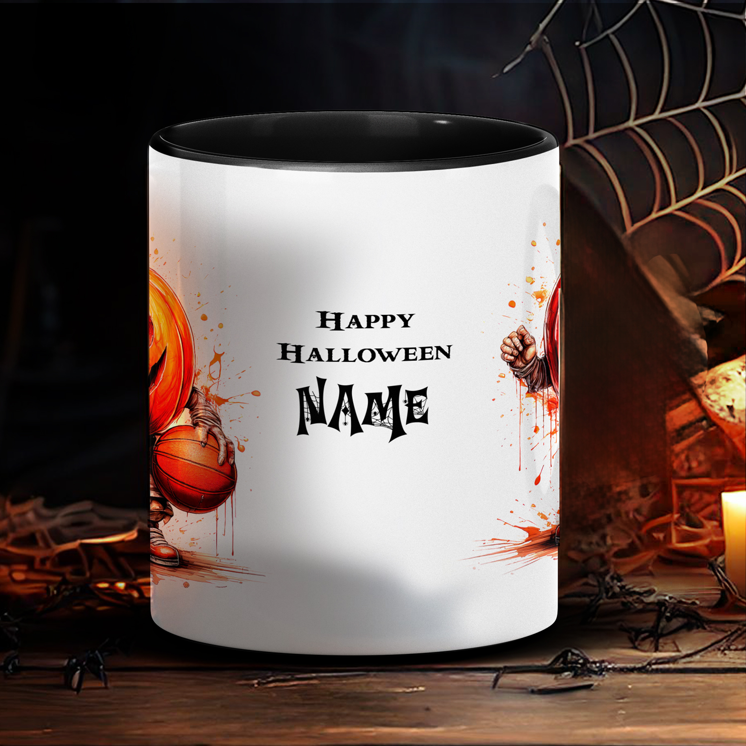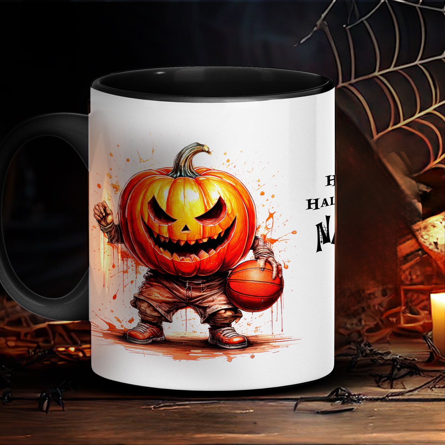 Gruselig schön und absolut einzigartig – unsere Keramiktasse mit bösem Kürbismotiv wird passend zu deinem Hobby (hier Basketball) und mit deinem Wunschnamen gestaltet. Das perfekte Geschenk für Halloween-Fans, als originelles Mitbringsel für die Party oder als schaurig-schöne Überraschung für deine Gäste.