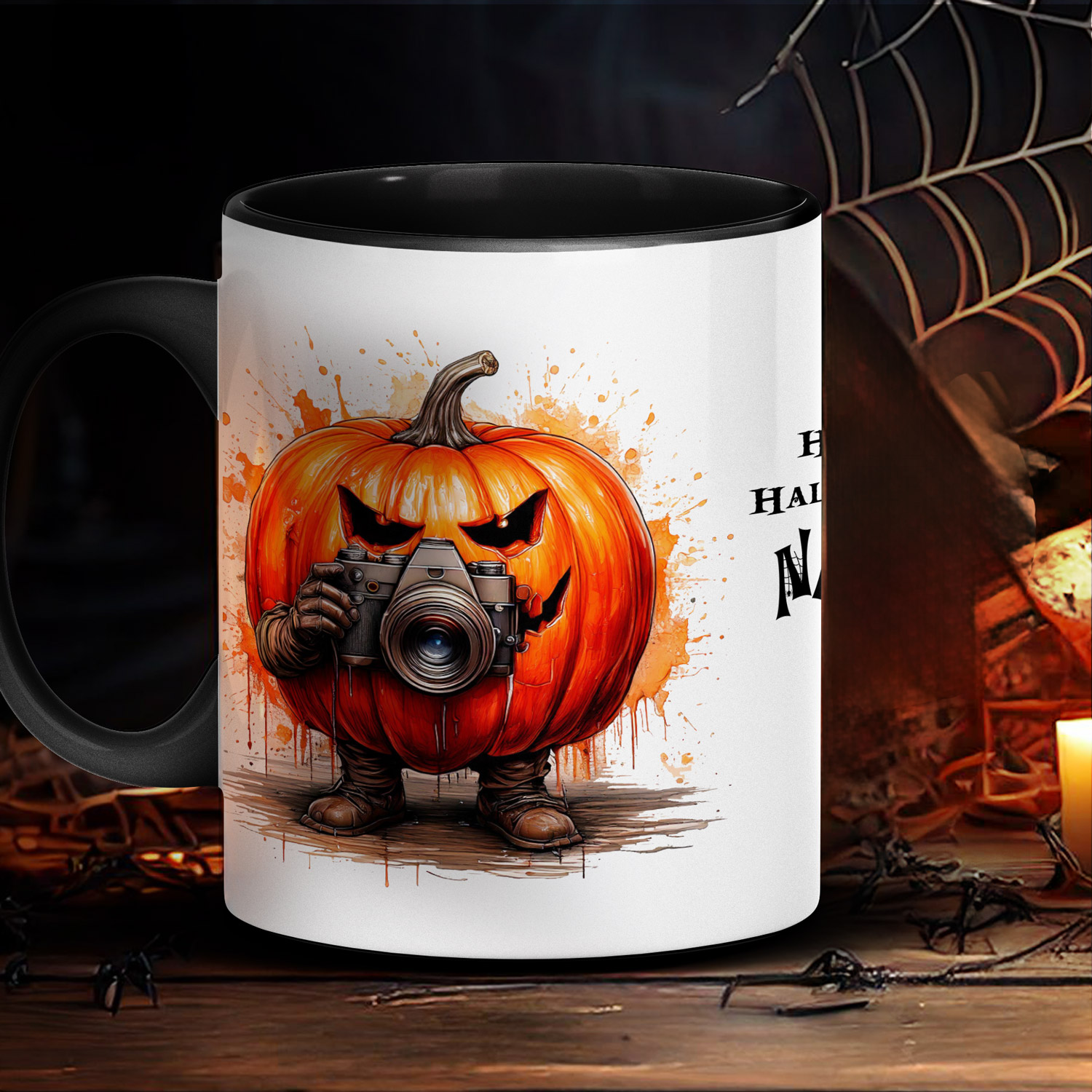 Gruselig schön und absolut einzigartig – unsere Keramiktasse mit bösem Kürbismotiv wird passend zu deinem Hobby (hier Fotografieren) und mit deinem Wunschnamen gestaltet. Das perfekte Geschenk für Halloween-Fans, als originelles Mitbringsel für die Party oder als schaurig-schöne Überraschung für deine Gäste.