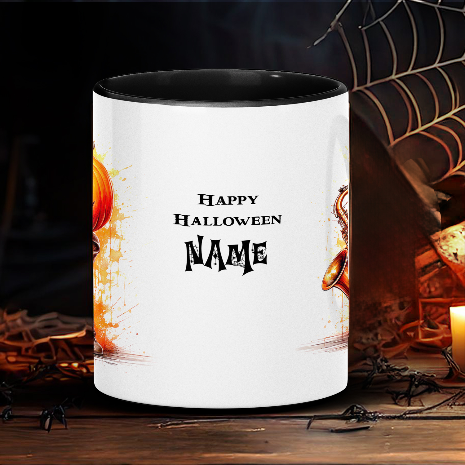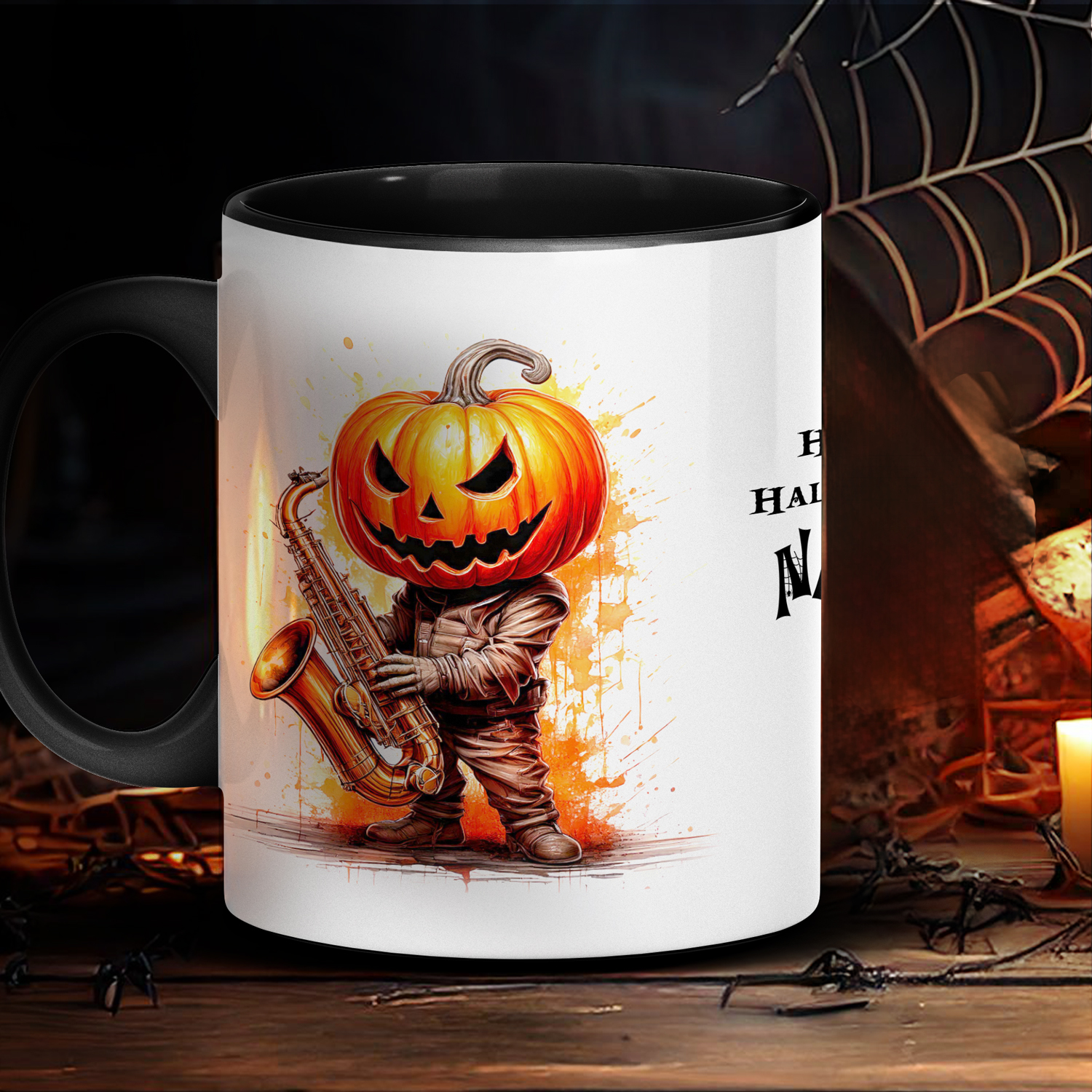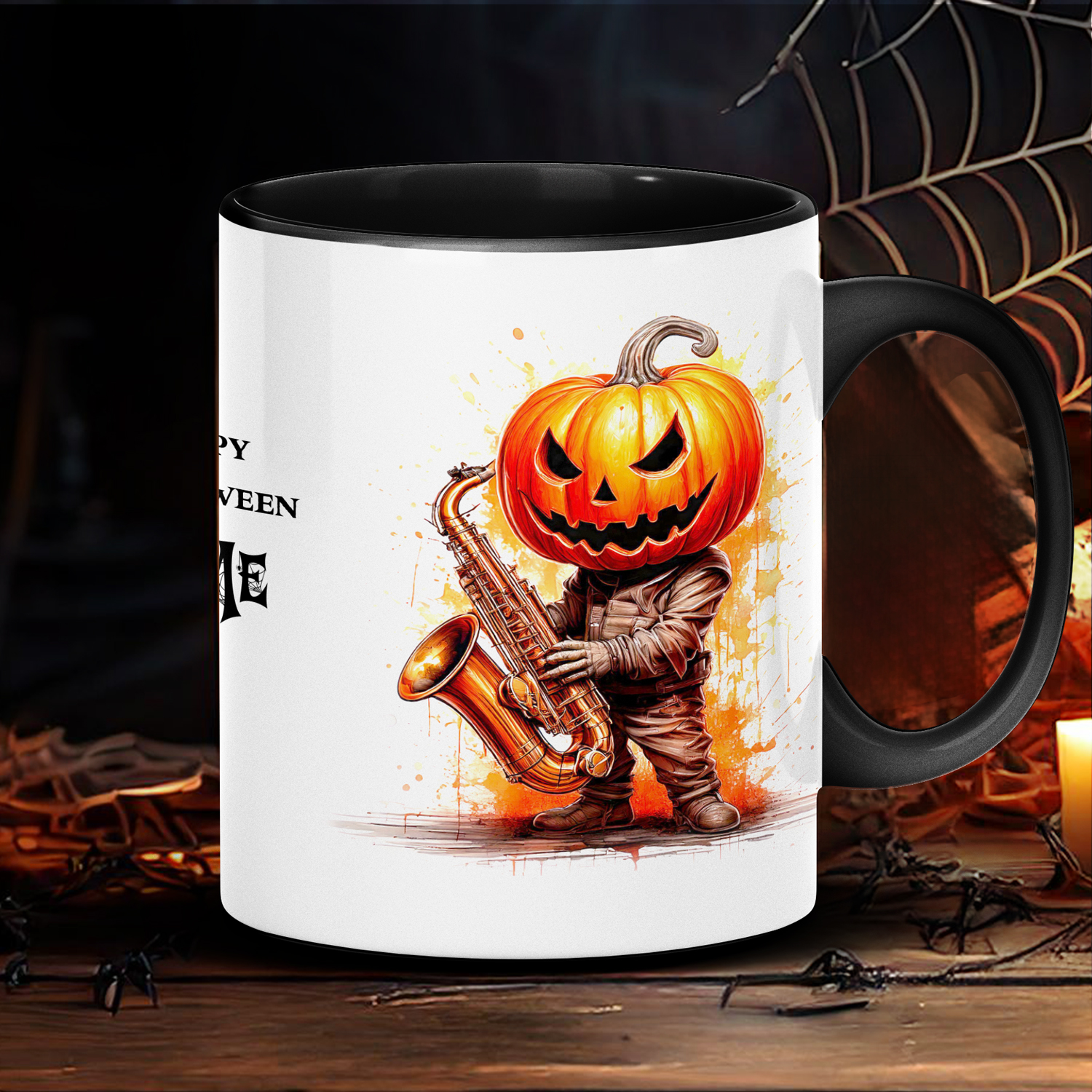 Gruselig schön und absolut einzigartig – unsere Keramiktasse mit bösem Kürbismotiv wird passend zu deinem Hobby (hier Saxophon) und mit deinem Wunschnamen gestaltet. Das perfekte Geschenk für Halloween-Fans, als originelles Mitbringsel für die Party oder als schaurig-schöne Überraschung für deine Gäste.