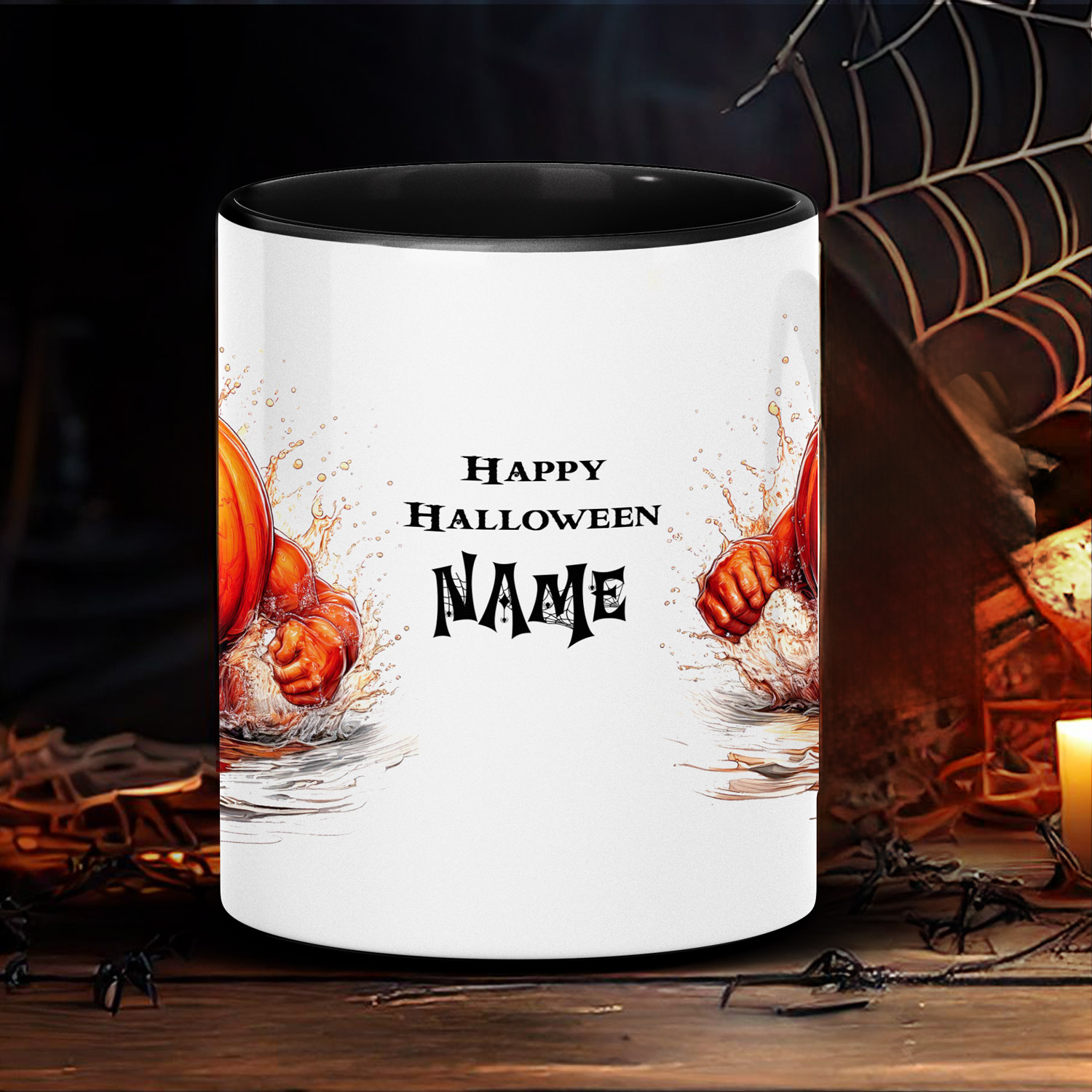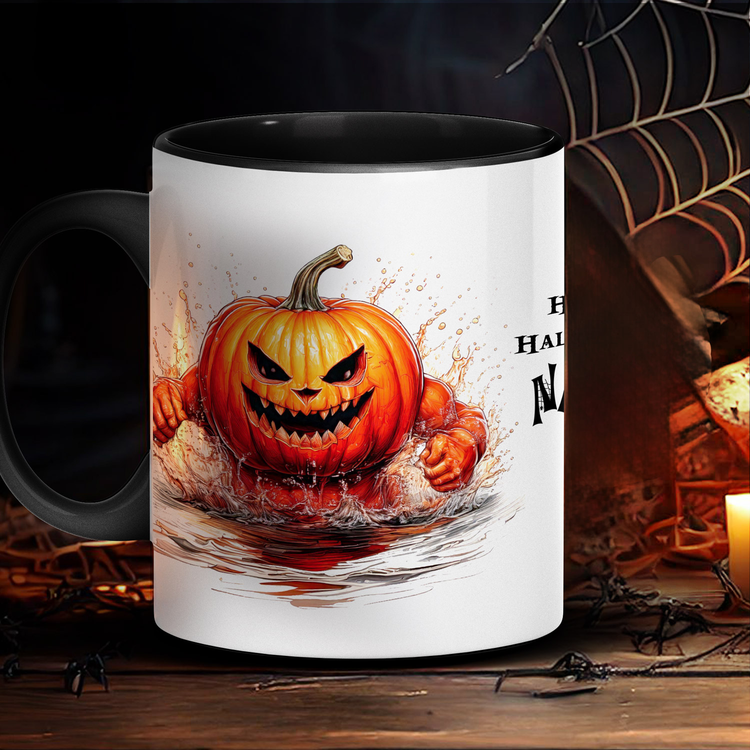 Personalisierbare Halloween-Tasse mit Kürbismotiv – das perfekte Geschenk für Gruselfans!
