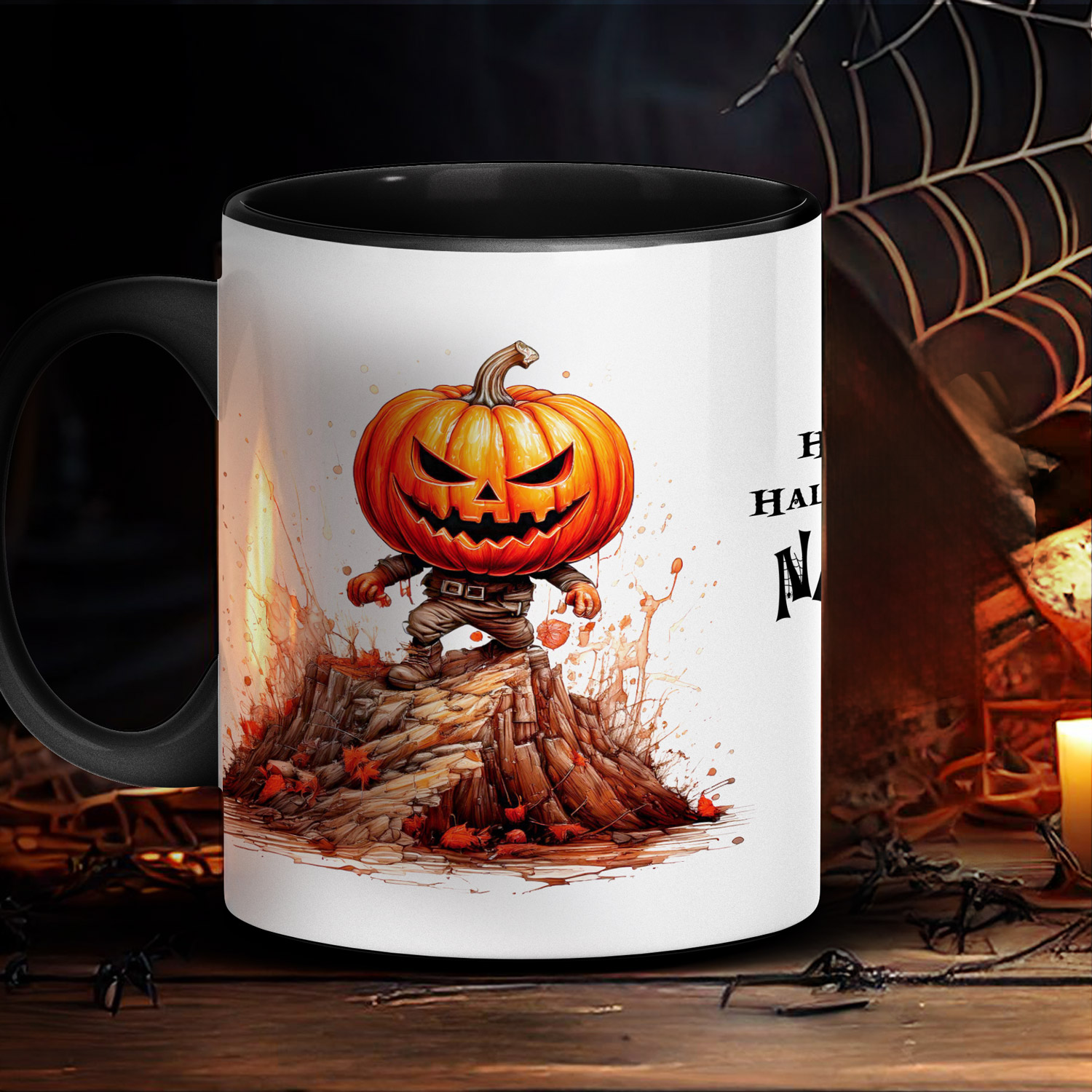 Personalisierbare Halloween-Tasse mit Kürbismotiv – das perfekte Geschenk für Gruselfans!