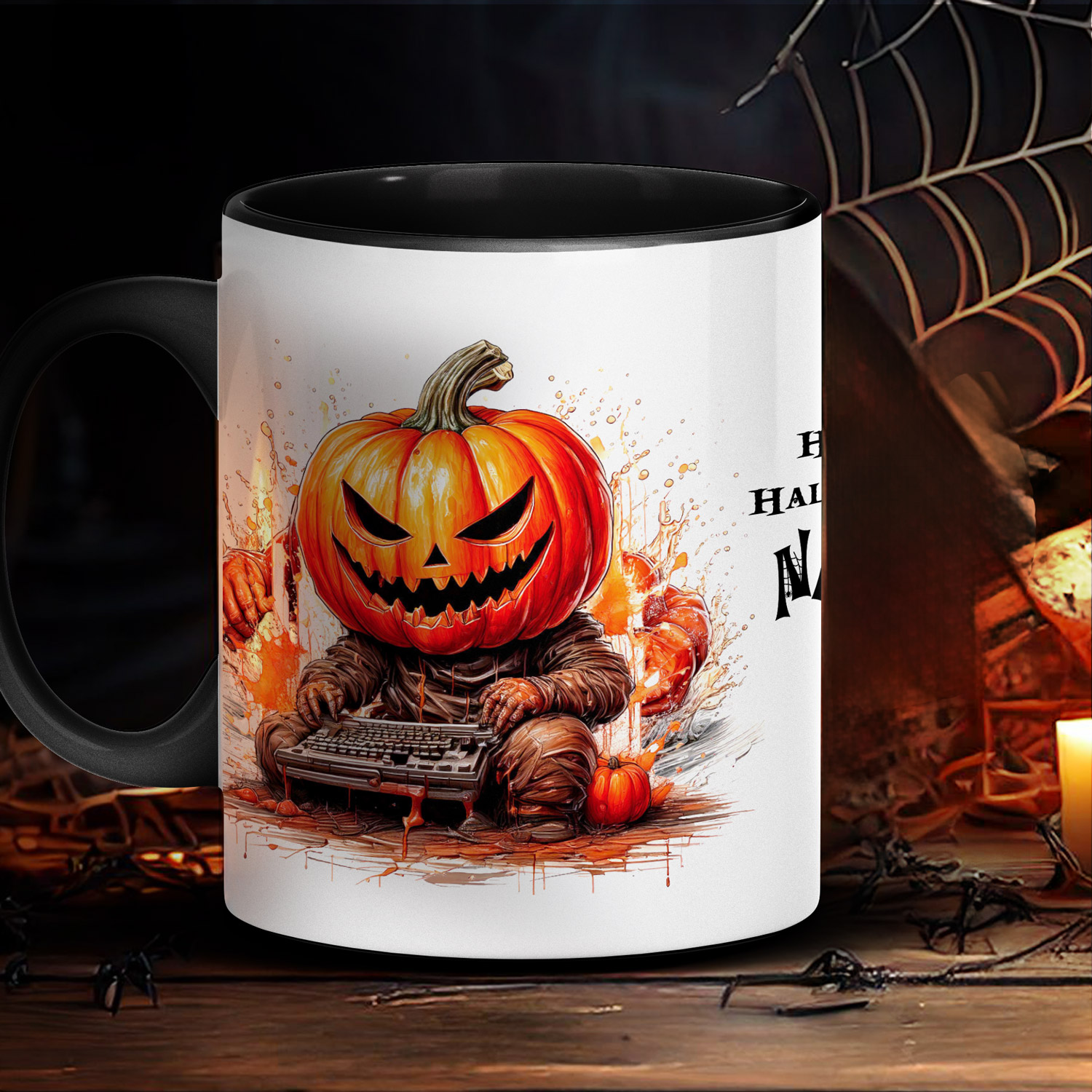 Personalisierbare Halloween-Tasse mit Kürbismotiv – das perfekte Geschenk für Gruselfans!