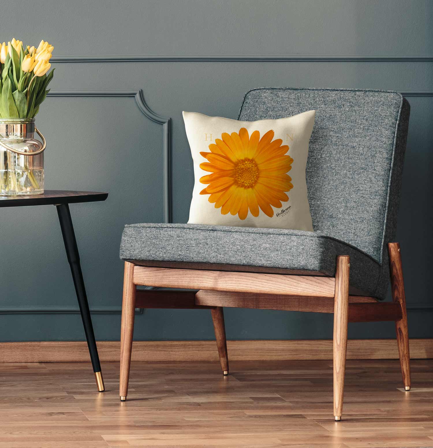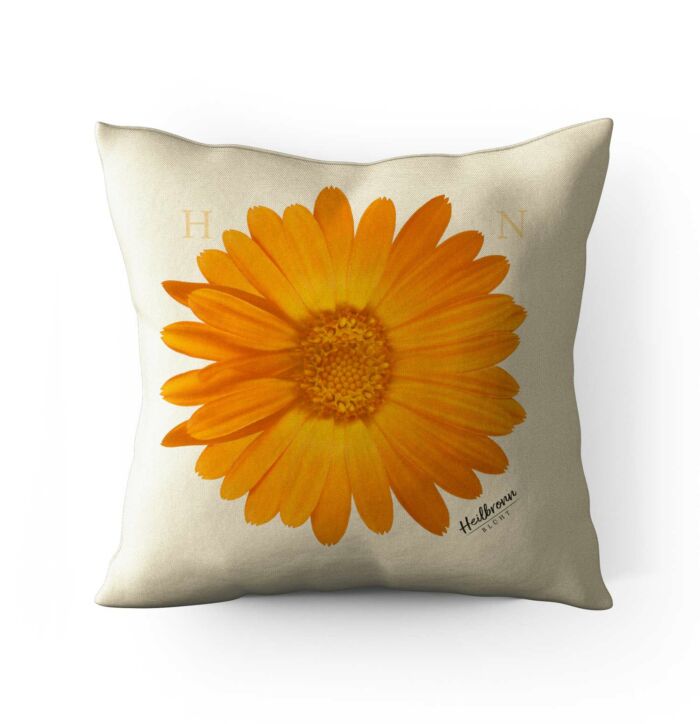 Eleganter Heilbronn Kissenbezug mit Blumenmotiv in Natur-Leinenoptik.