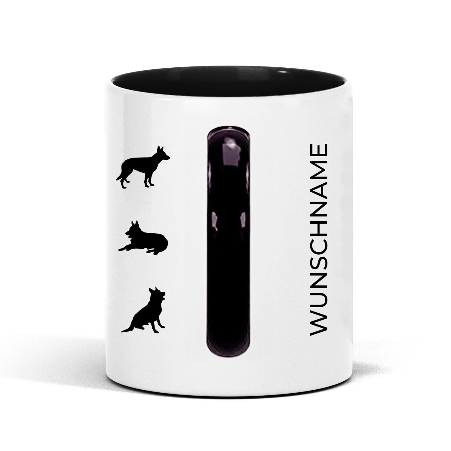 Hochwertige Tasse mit Schäferhundmotiv in unterschiedlichen Farben auf Wunsch personalisierbar.
