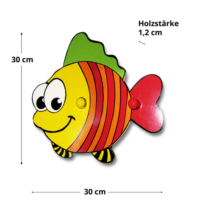 Schöner Holz Kinder-Wandhaken in Fisch-Form, ideal für das Kinderzimmer.