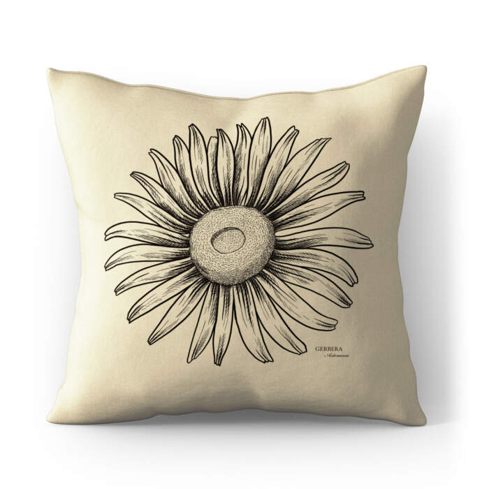 Eleganter Kissenbezug mit Blumenmotiv in Natur-Leinenoptik.