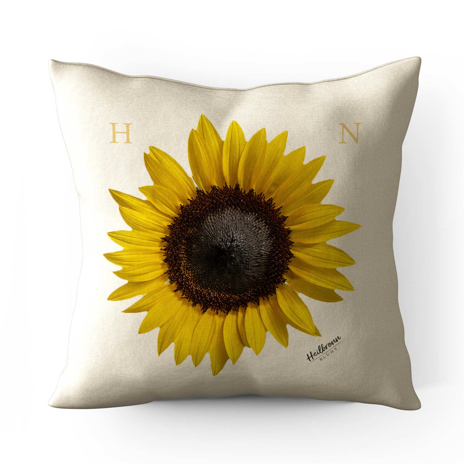 Eleganter Kissenbezug mit Blumenmotiv in Natur-Leinenoptik.