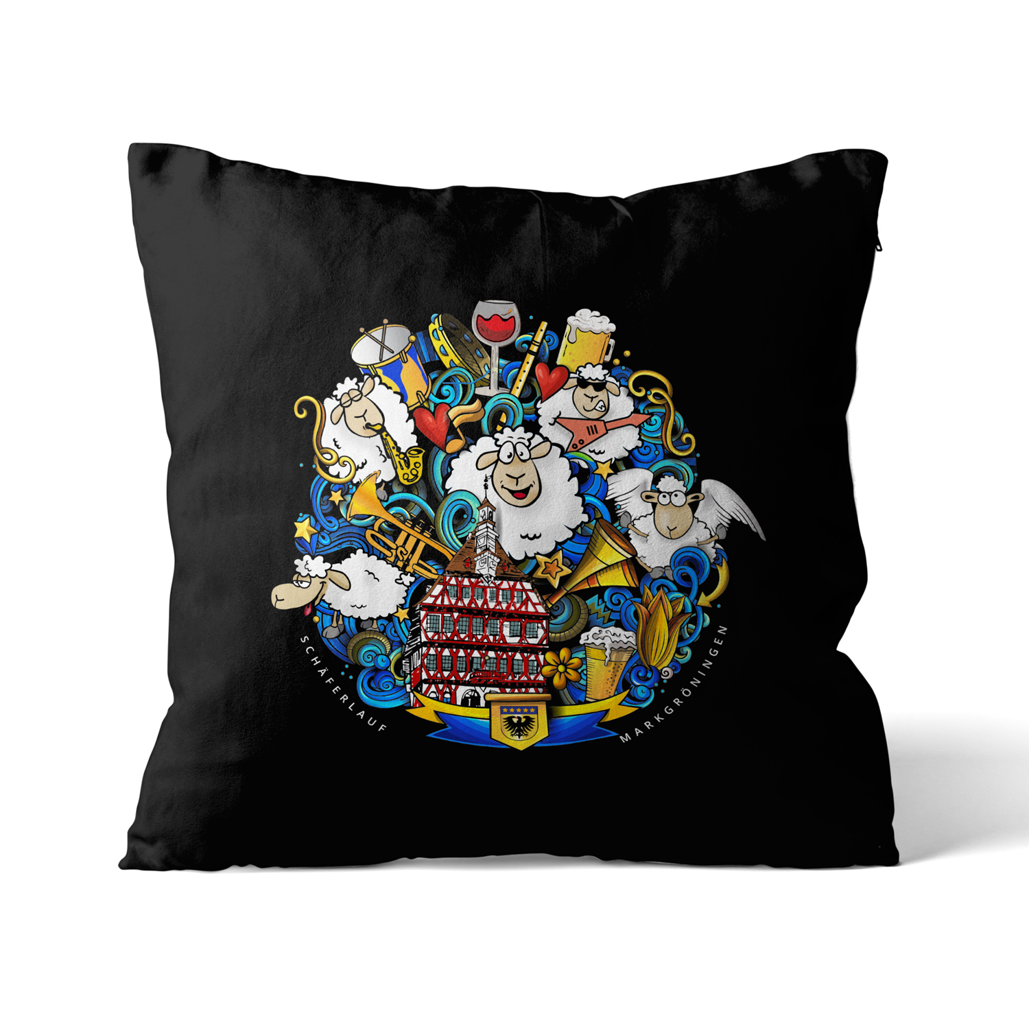 Eleganter Kissenbezug mit Schäferlauf Markgröningen Motiv.