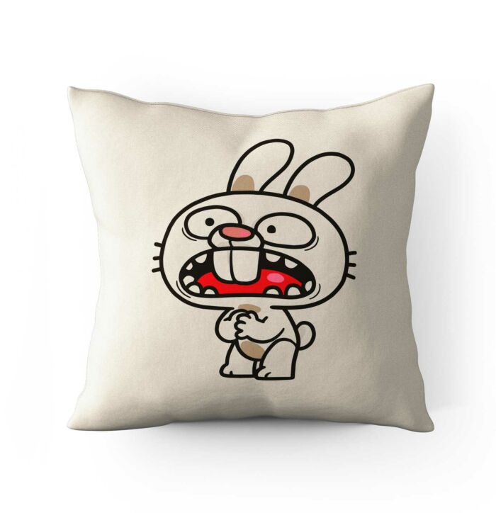 Kissenbezug mit Angsthasen-Motiv in Natur-Leinenoptik.