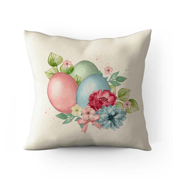 Eleganter Kissenbezug mit Hasenmotiv in Natur-Leinenoptik. Passend zur Kaffee- oder Teetasse.