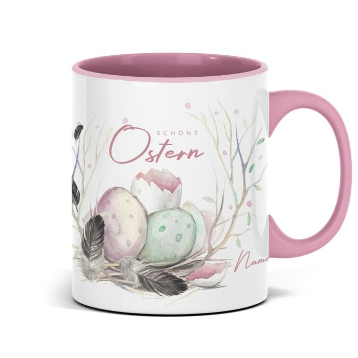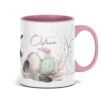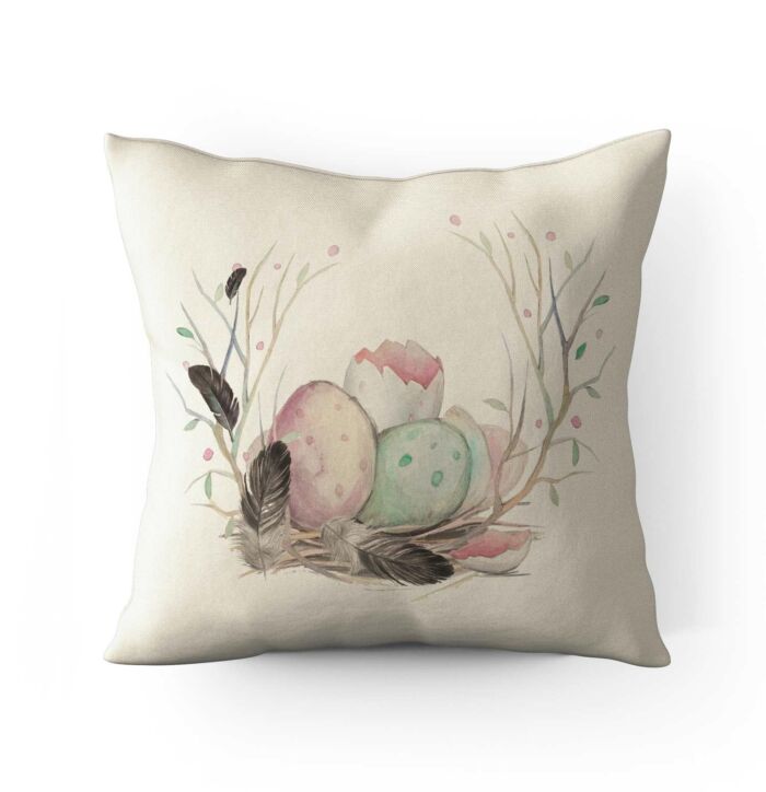 Eleganter Kissenbezug mit Ostermotiv in Natur-Leinenoptik. Passend zur Kaffee- oder Teetasse im gleichen Design.