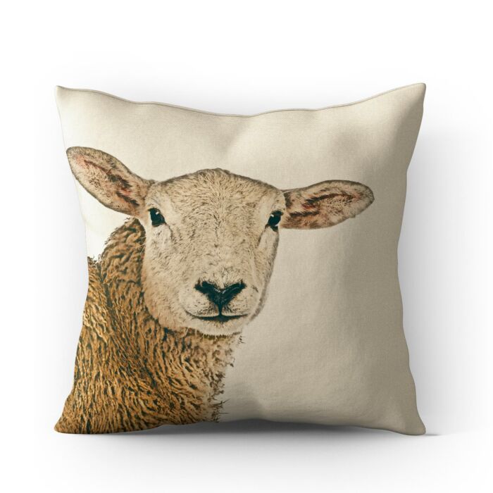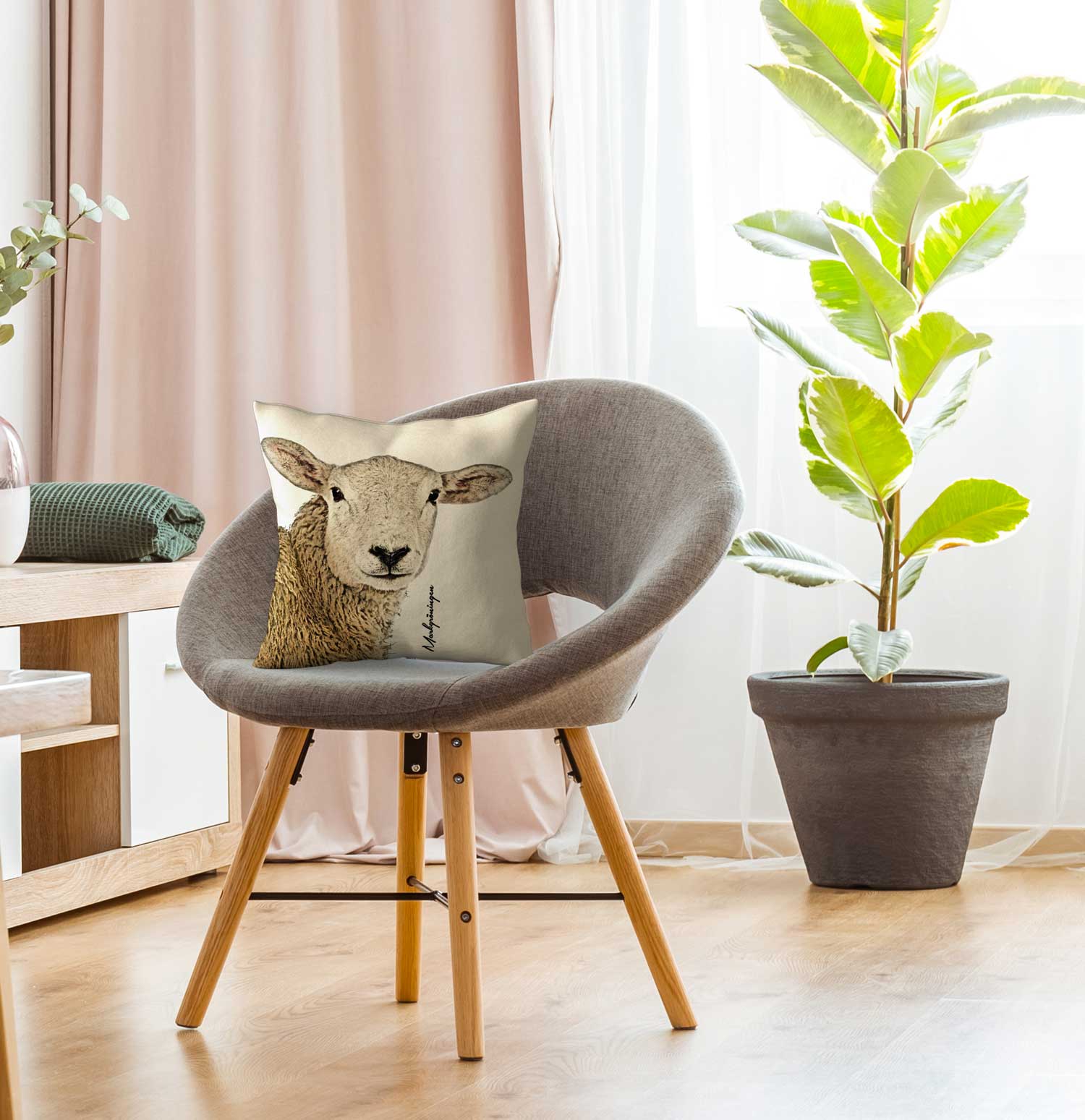 Eleganter Kissenbezug mit Schafmotiv in Natur-Leinenoptik.
