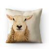 Eleganter Kissenbezug mit Schafmotiv in Natur-Leinenoptik.