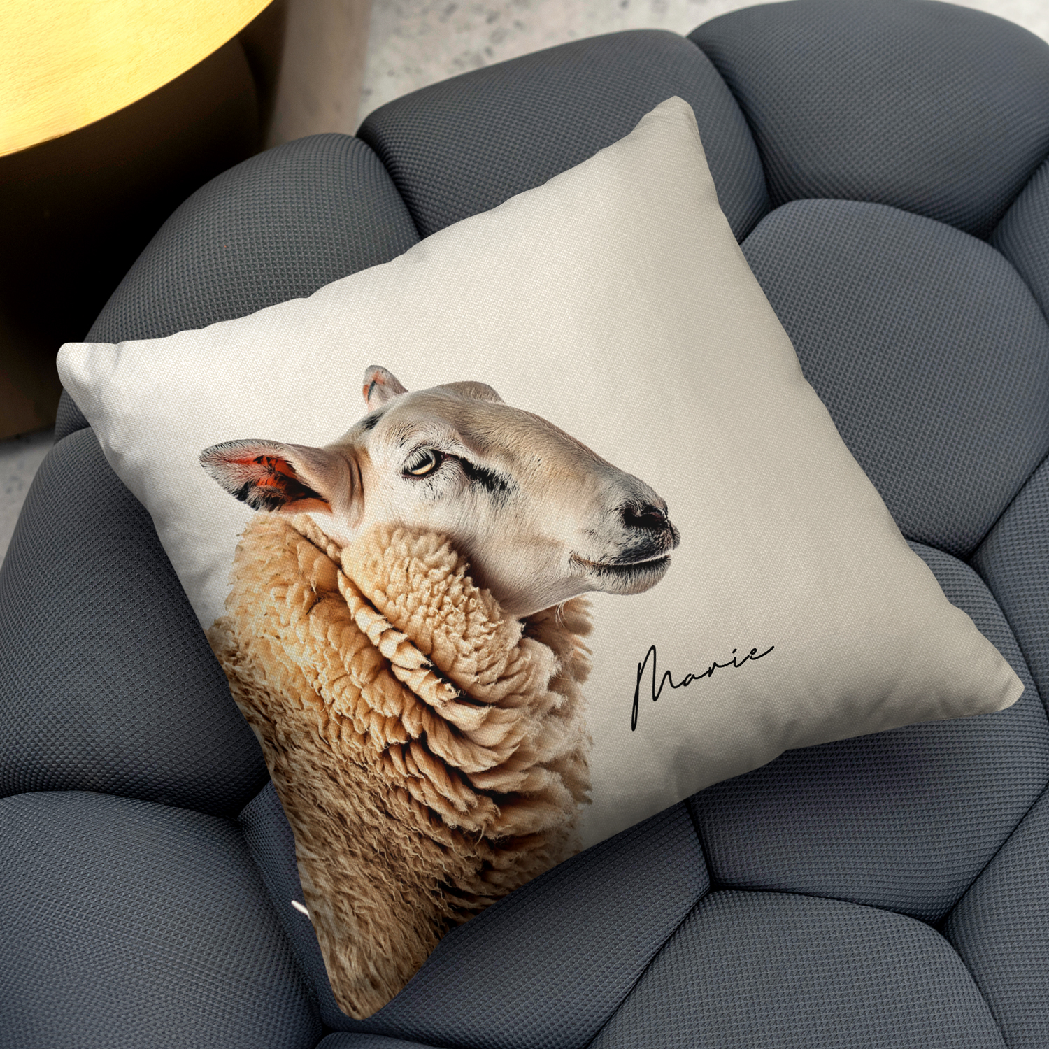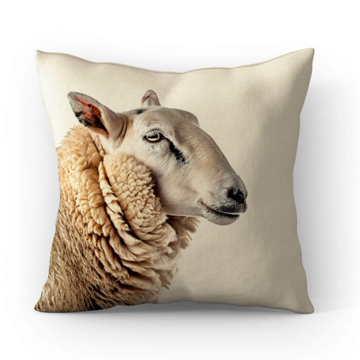 Eleganter Kissenbezug mit Schafmotiv in Natur-Leinenoptik.