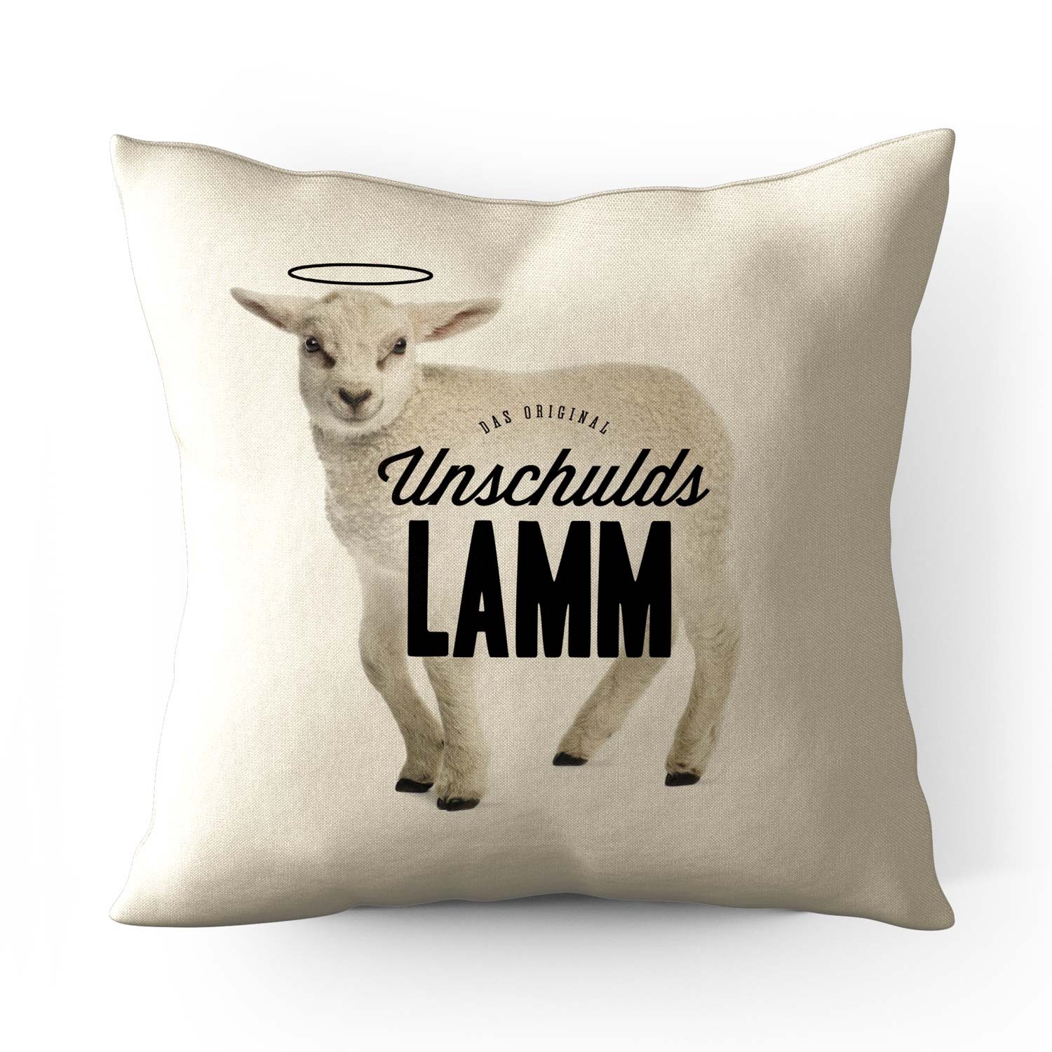 Eleganter Kissenbezug mit Schafmotiv in Natur-Leinenoptik.
