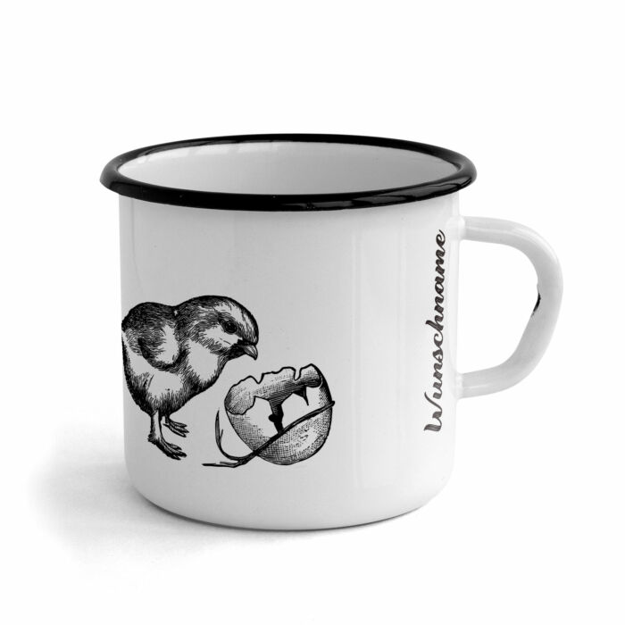 • origineller Retrobecher aus Emaille mit süßem Kücken