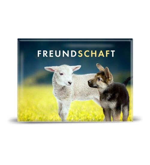 Fotomagnet mit Schafspruch. Ideal für den Kühlschrank oder andere magnetischen Flächen.