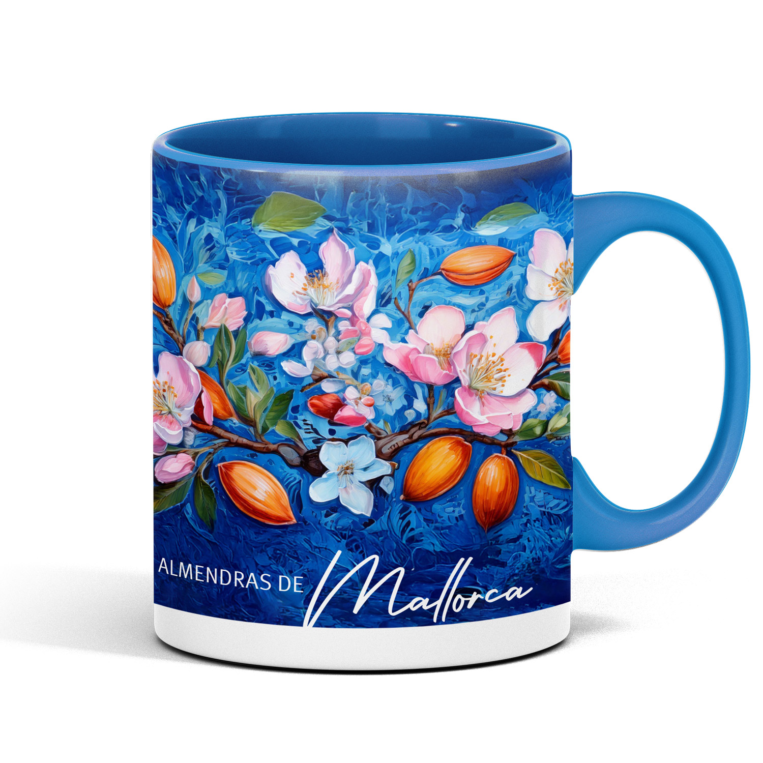 Das liebevoll gestaltete Mallorca-Muster mit Mandeln und mediterranen Farben sorgt für echtes Insel-Feeling. Farbige Innenseite und Henkel setzen stilvolle Akzente – ein echter Hingucker in jeder Küche - Made in Germany – mit Liebe gefertigt