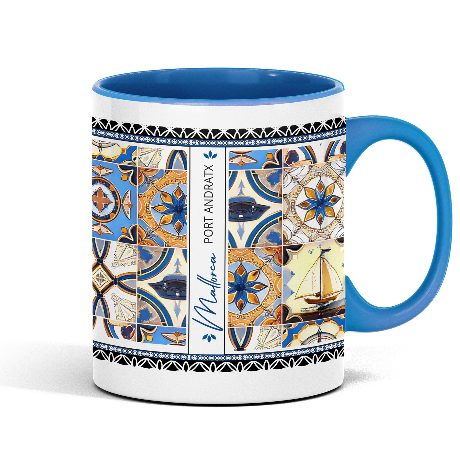 Diese liebevoll gestaltete Tasse im typisch spanischen Fliesenstil mit Port Andratx lässt sich individuell mit deinem Wunschort auf Mallorca – z. B. Alcúdia, Cala Millor, Playa de Muro, Palma, Valldemossa, Cala Ratjada, Paguera, Can Picafort – und optional mit einem Wunschnamen personalisieren.