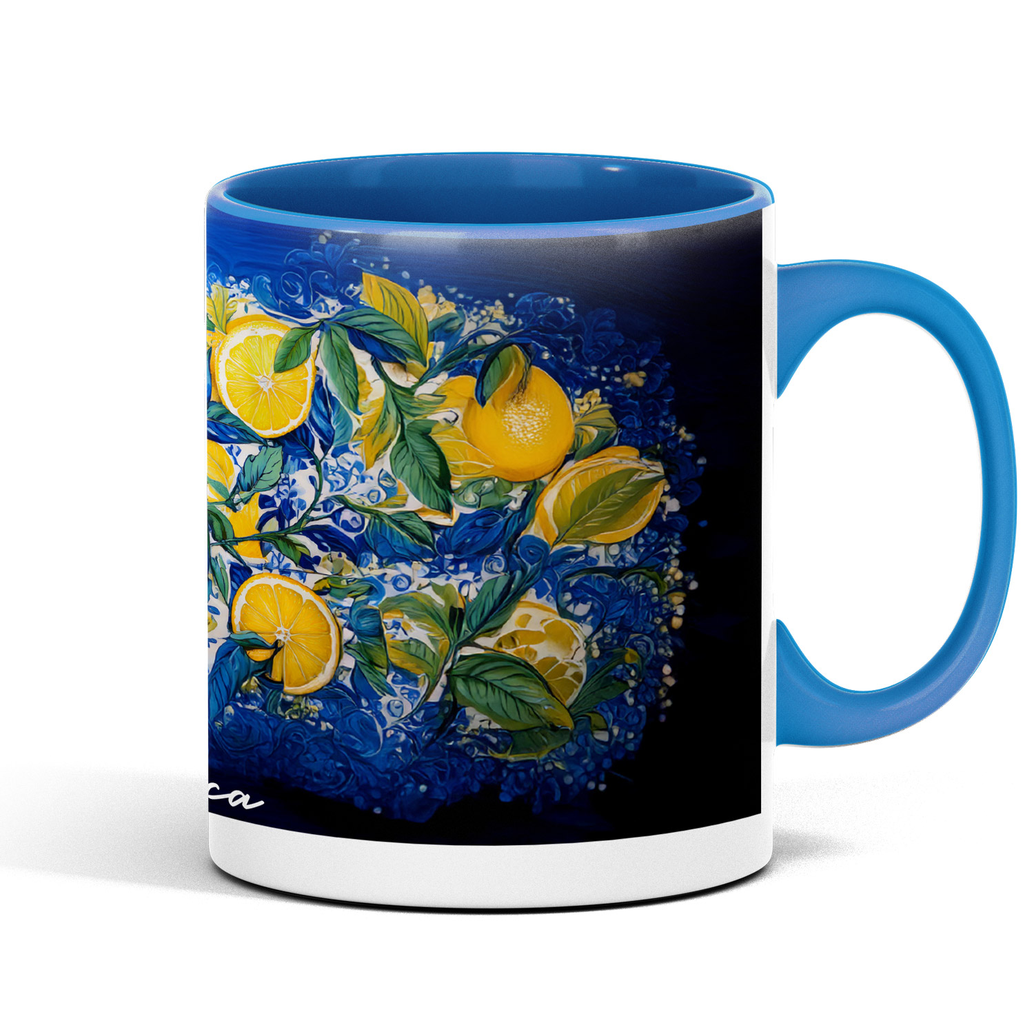 Das liebevoll gestaltete Mallorca-Muster mit Zitronen und mediterranen Farben sorgt für echtes Insel-Feeling. Farbige Innenseite und Henkel setzen stilvolle Akzente – ein echter Hingucker in jeder Küche - Made in Germany – mit Liebe gefertigt