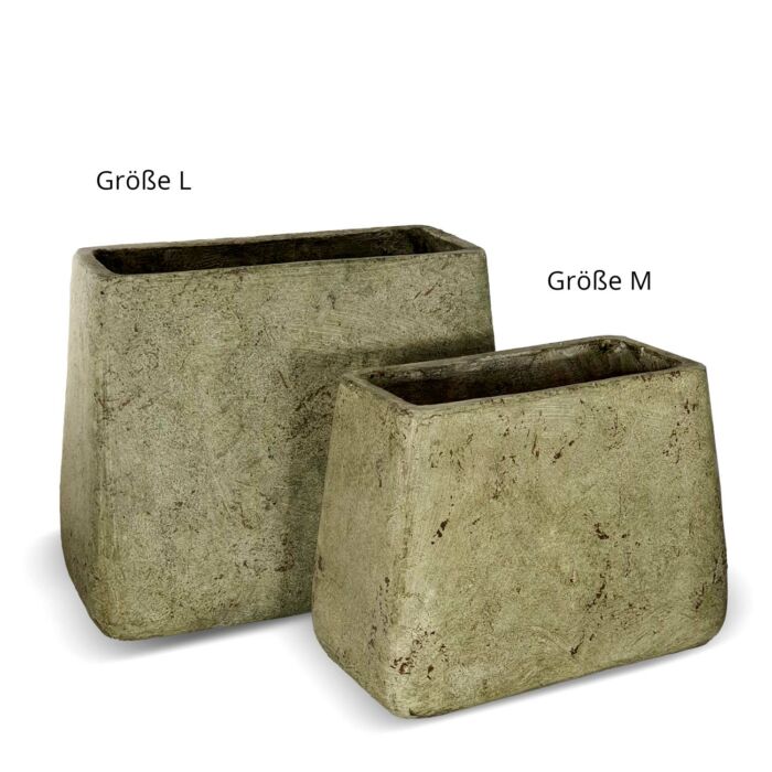 Aus Keramik gefertigte Pflanzschale in Antik-Patina-Optik (in 2 Größen erhältlich). Eine stilvolle Dekoration für Garten, Terrasse oder Haus.
