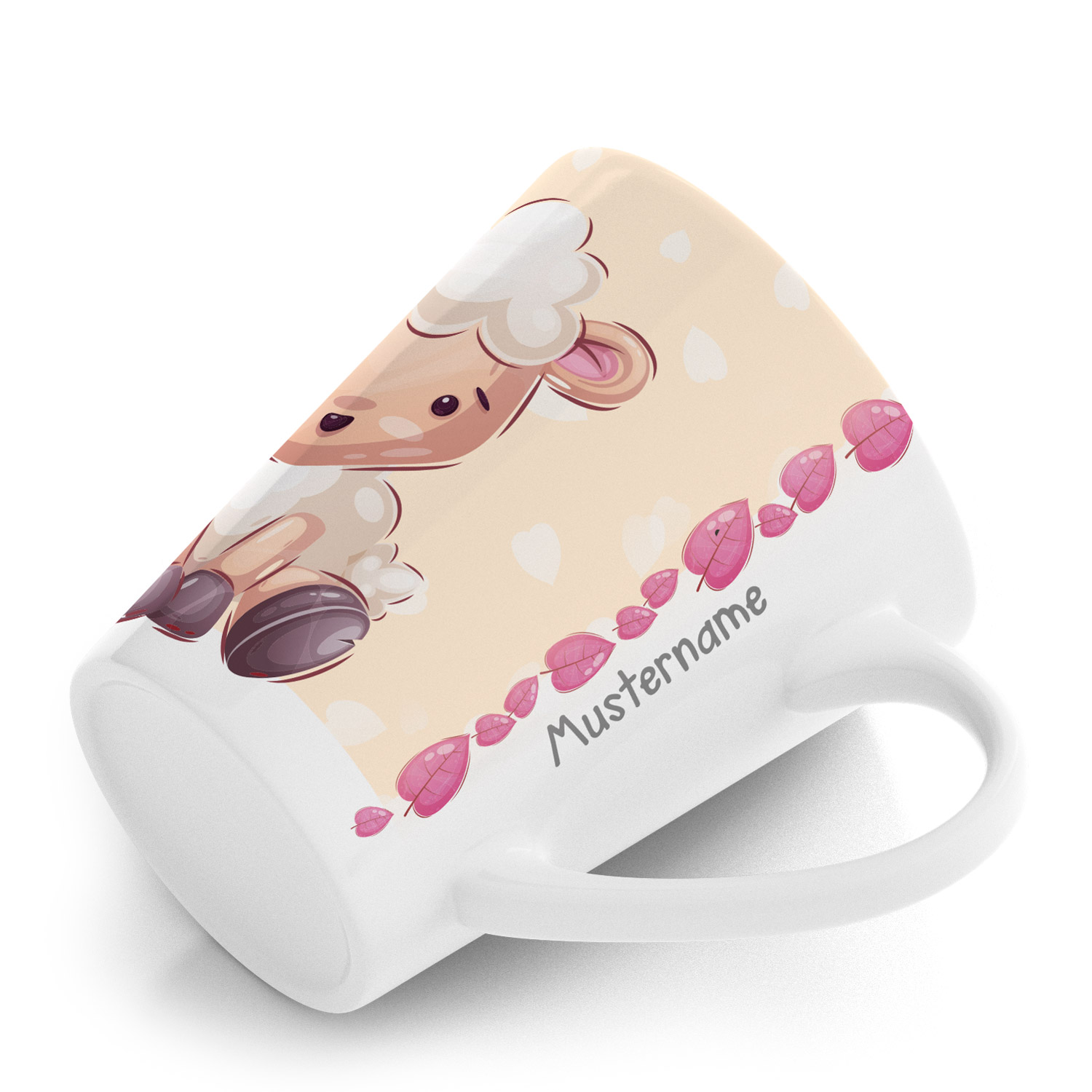 Hochwertige Tasse mit süßem Schäfchen Motiv auf Wunsch personalisierbar.