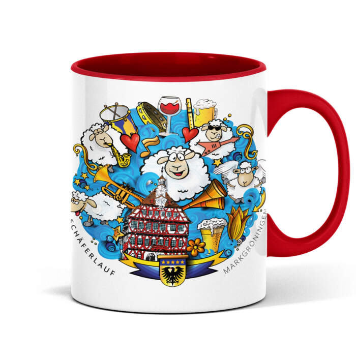 Hochwertige Tasse mit lustigem Schäferlauf Markgröningen Motiv.