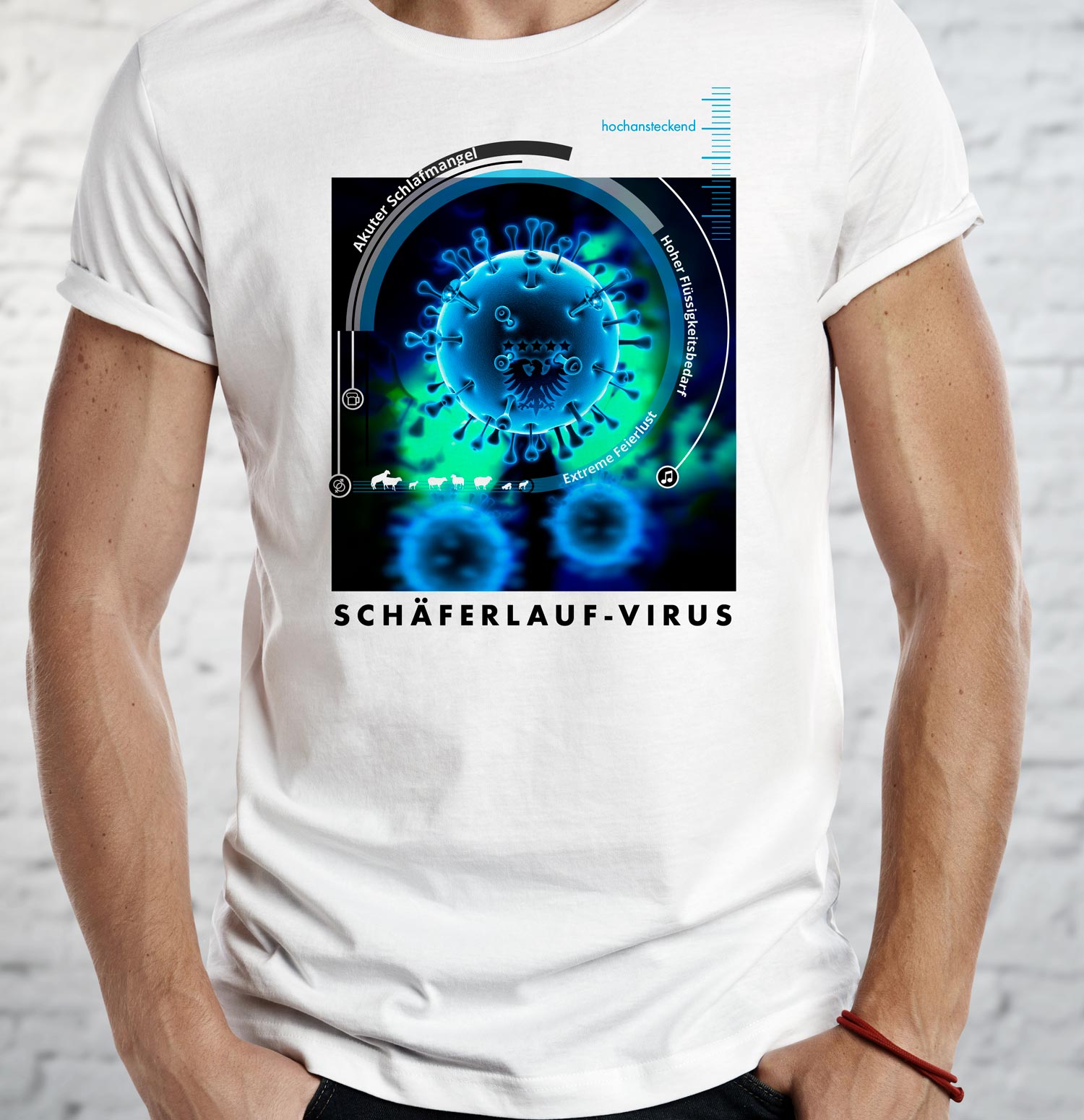 Feuchtigkeitsregulierendes Funktions-Shirt mit dem extrem ansteckenden Schäferlauf-Virus.