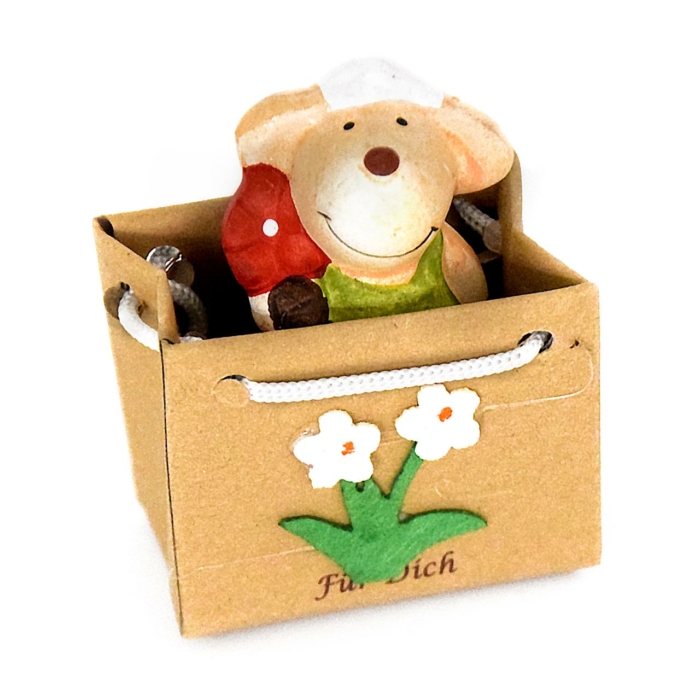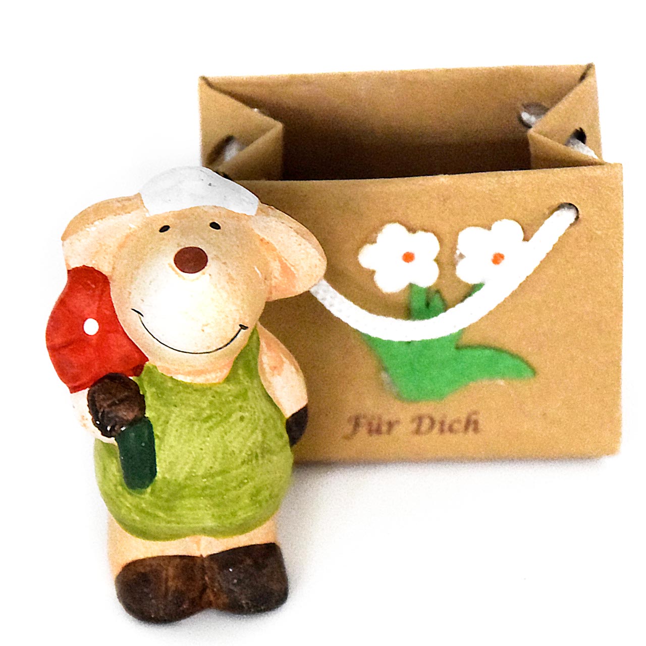 Süßes Keramikschäfchen in der Geschenktüte „Für Dich“.