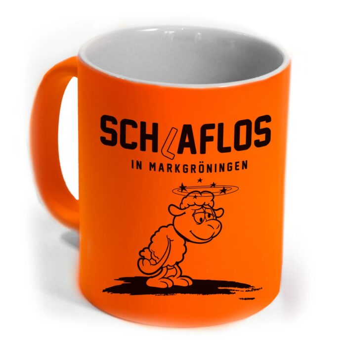Hochwertige Keramiktasse in leuchtendem Neonorange für alle Markgröninger/-innen, die die Nacht zum Tag machen.