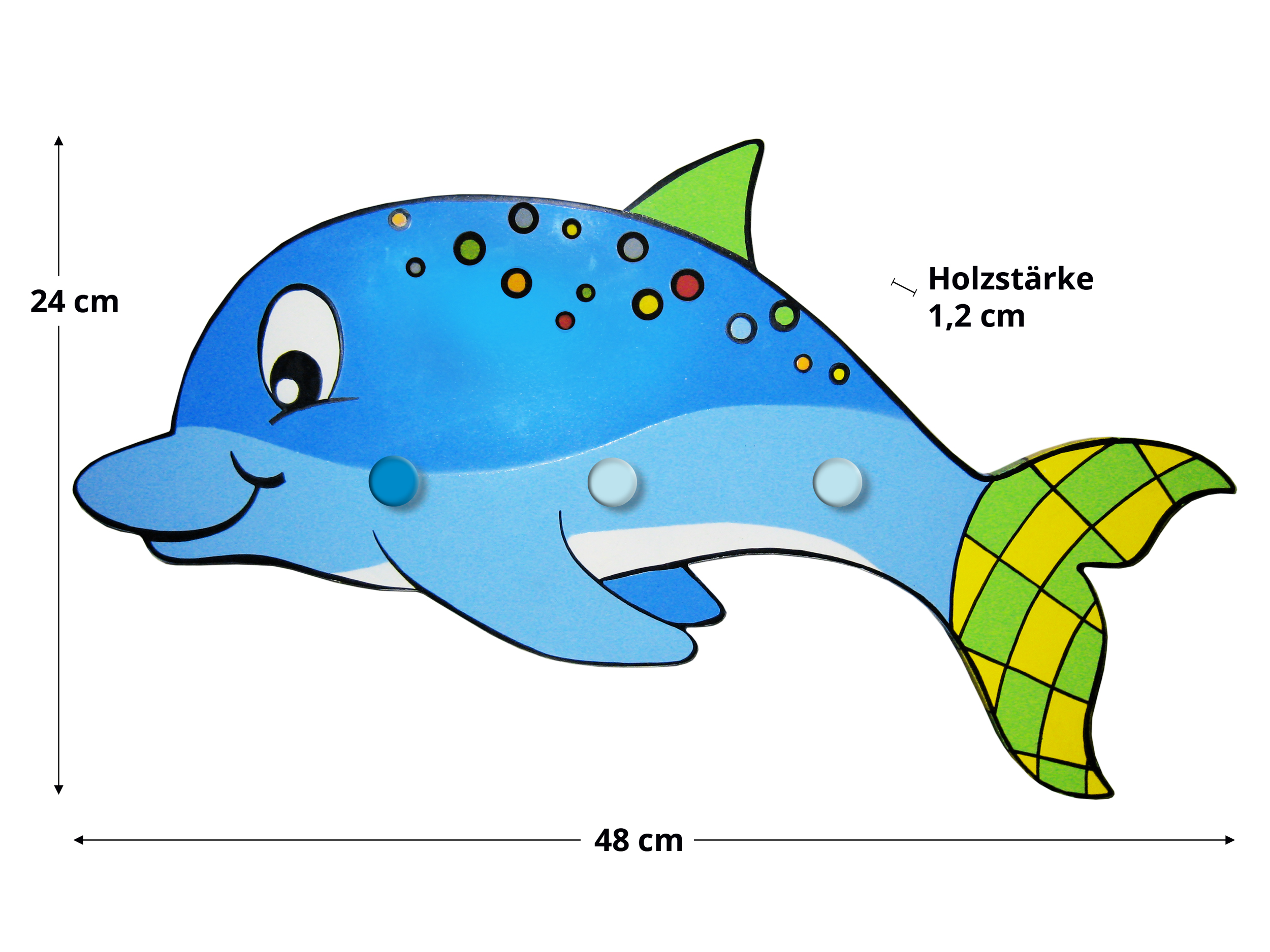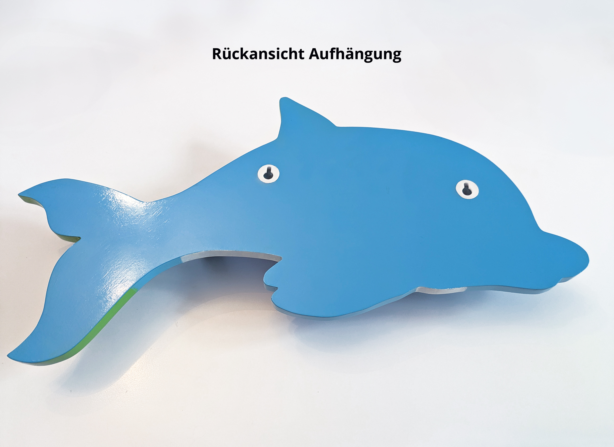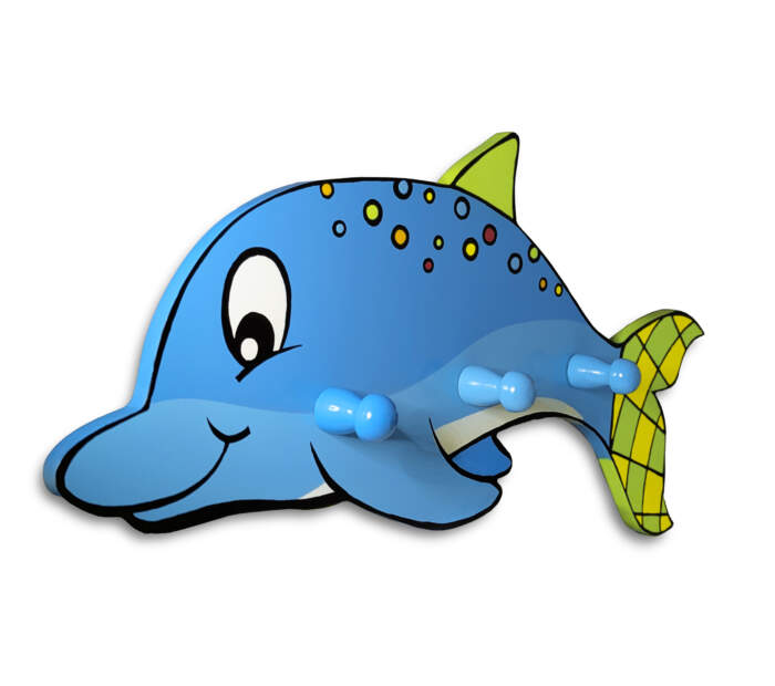 Schöner Holz Kinder-Wandhaken in Delfin-Form, ideal für das Kinderzimmer.