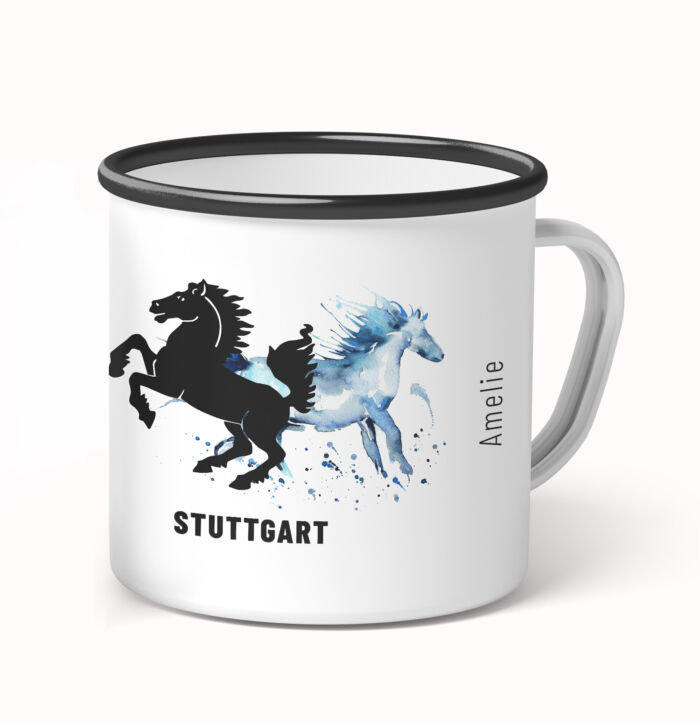 Stuttgart Emaille Becher Pferd blau auch mit Wunschnamen