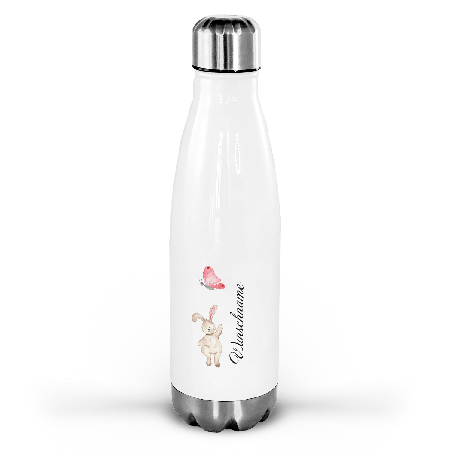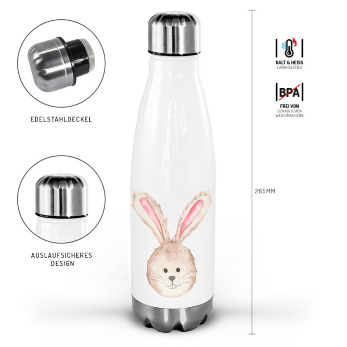 Hochwertige Thermosflasche aus Edelstahl mit süßem Hasen Motiv. Auf Wunsch personalisierbar.