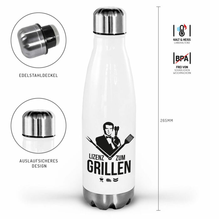 Hochwertige Thermosflasche aus Edelstahl mit besonderem Grill-Motiv. Auf Wunsch personalisierbar.