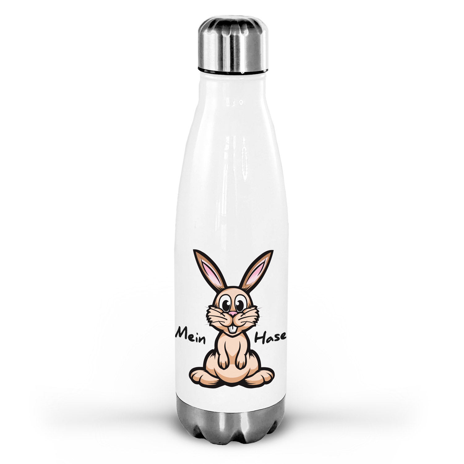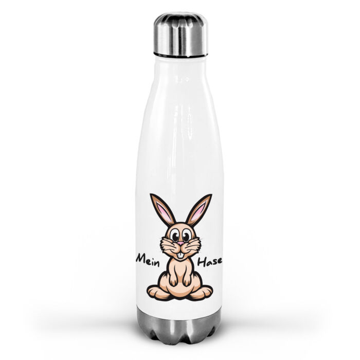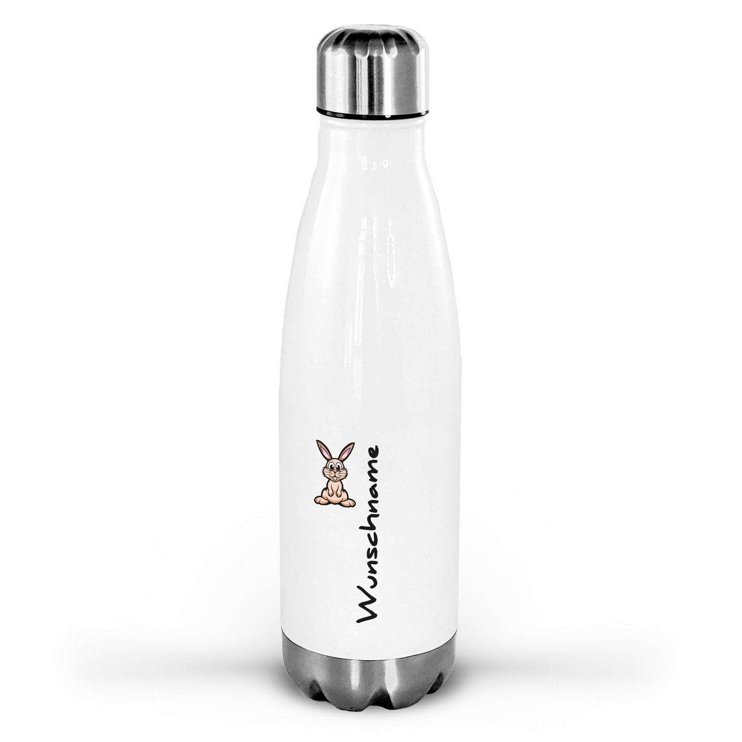 Hochwertige Thermosflasche aus Edelstahl mit Hasen Motiv. Auf Wunsch personalisierbar.