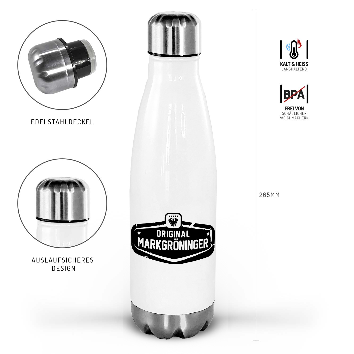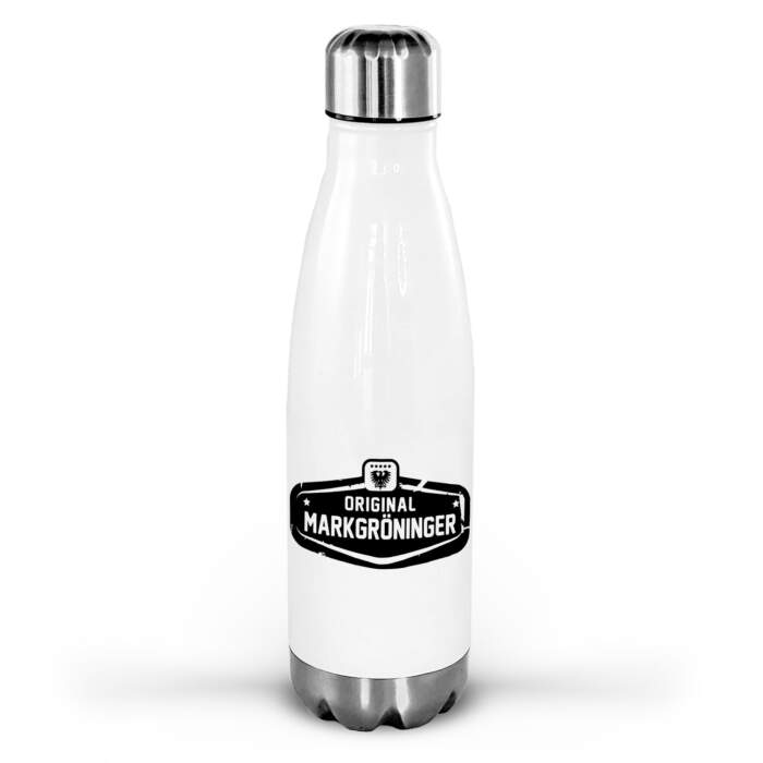 Hochwertige Thermosflasche aus Edelstahl mit Original Markgröninger. Auf Wunsch personalisierbar.
