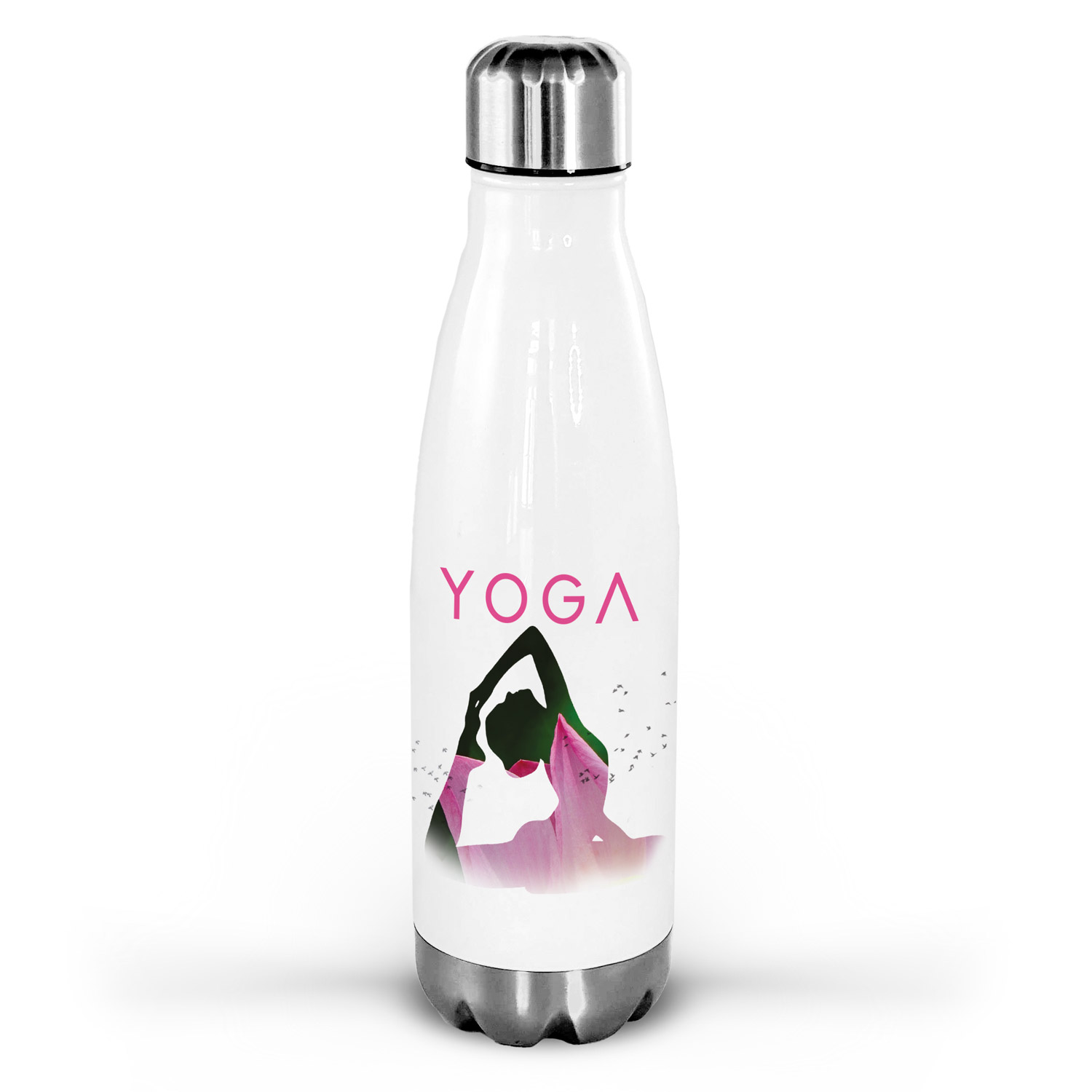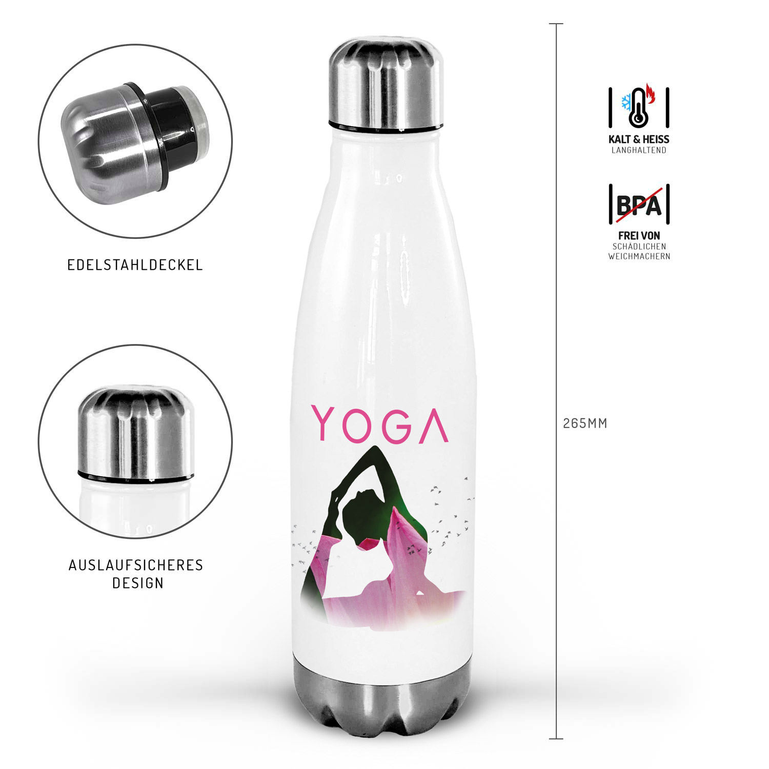 Hochwertige Thermosflasche aus Edelstahl mit Yoga Mandala Motiv. Auf Wunsch personalisierbar.