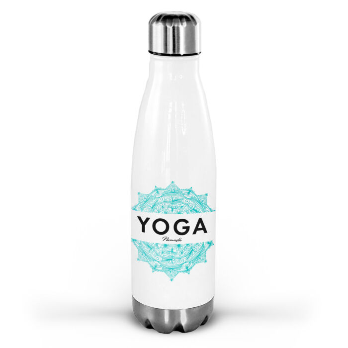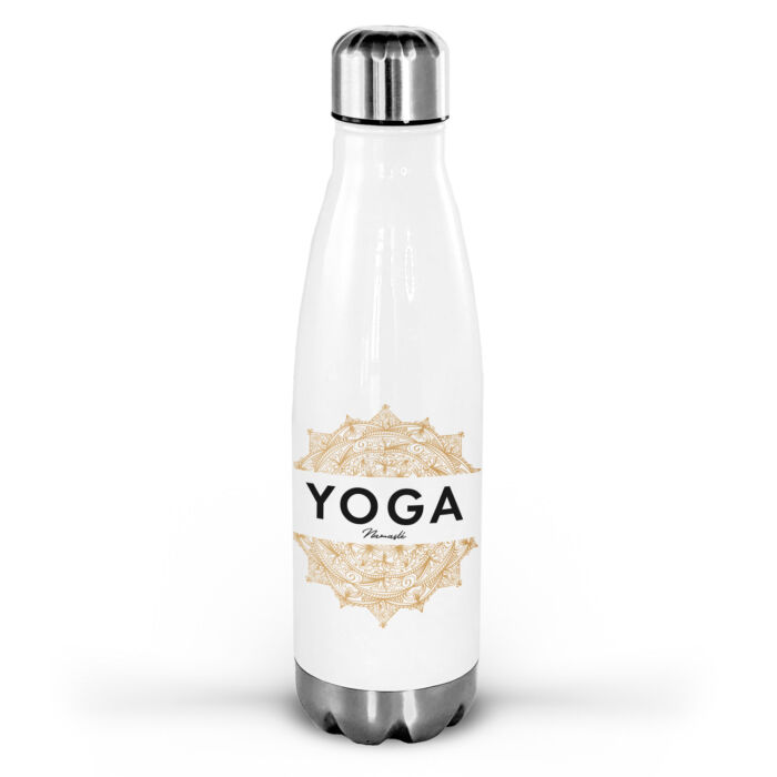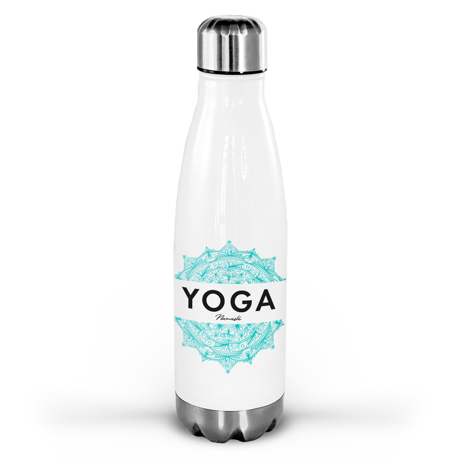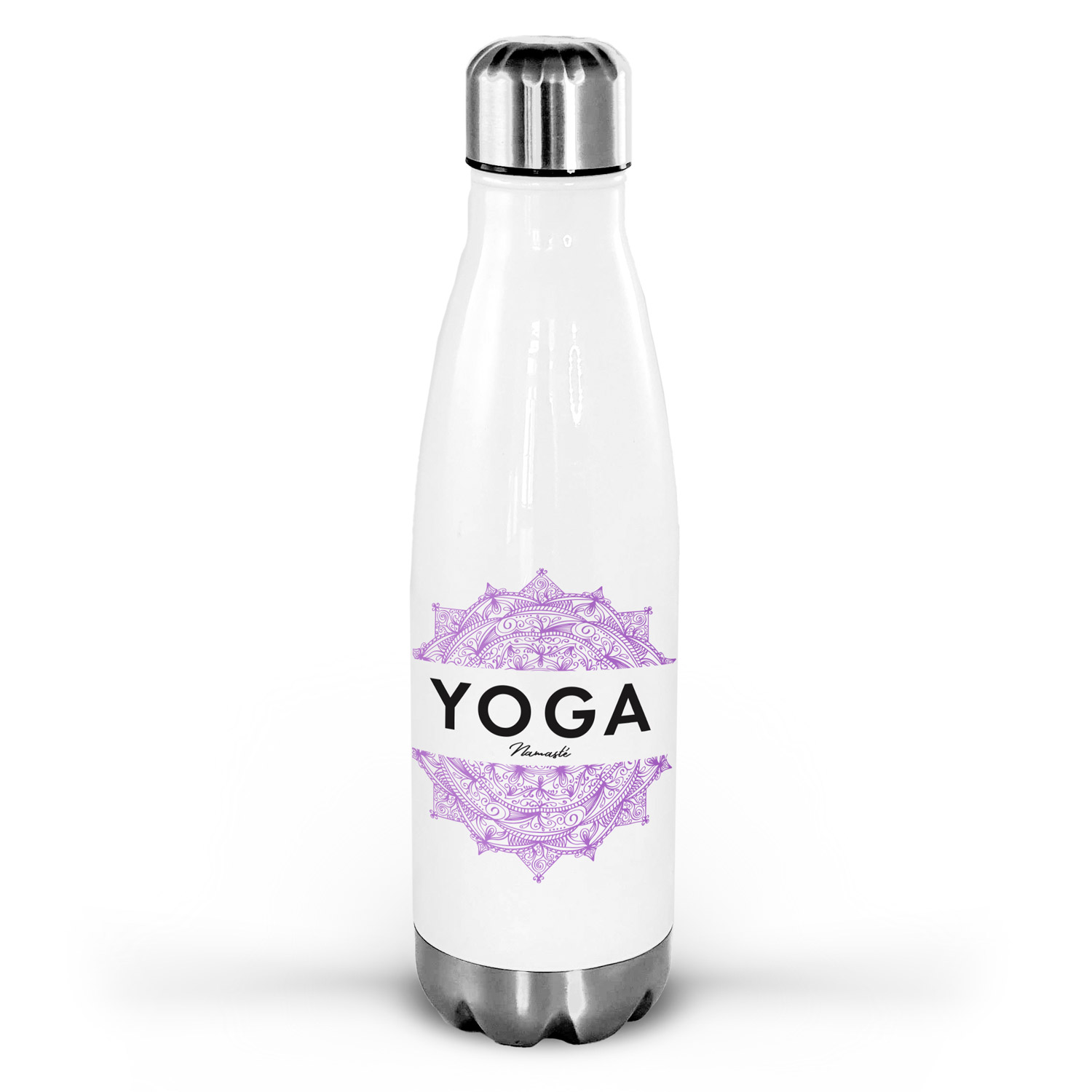 Hochwertige Thermosflasche aus Edelstahl mit Yoga Mandala Motiv. Auf Wunsch personalisierbar.
