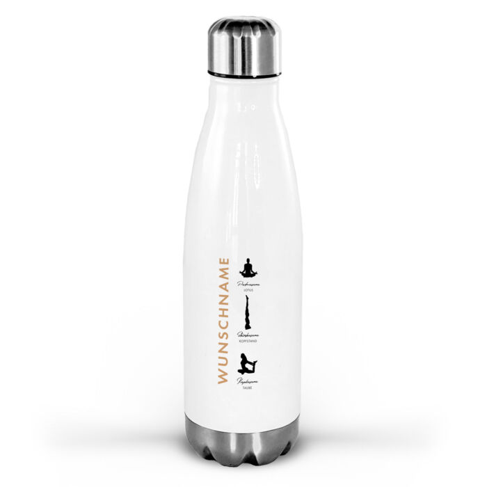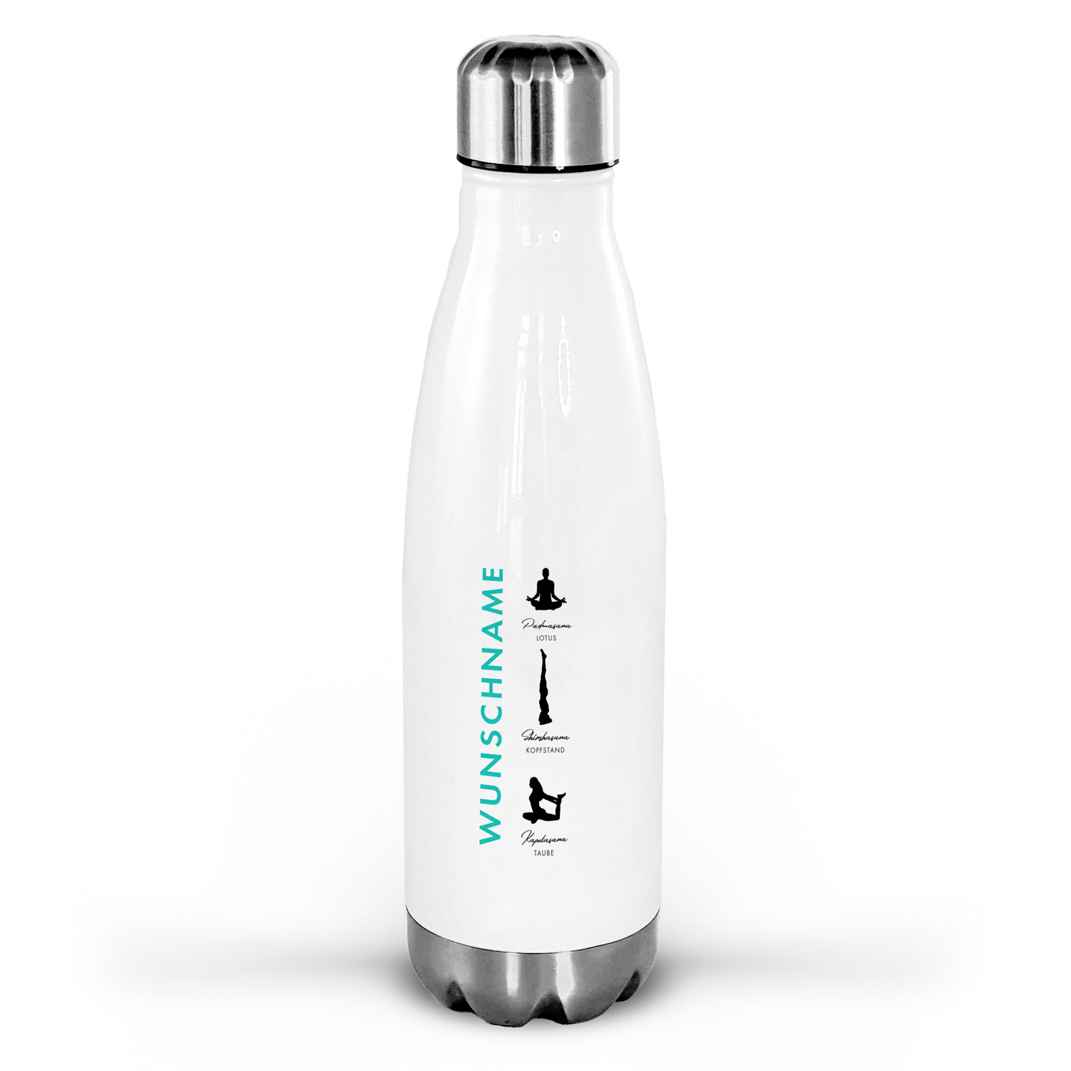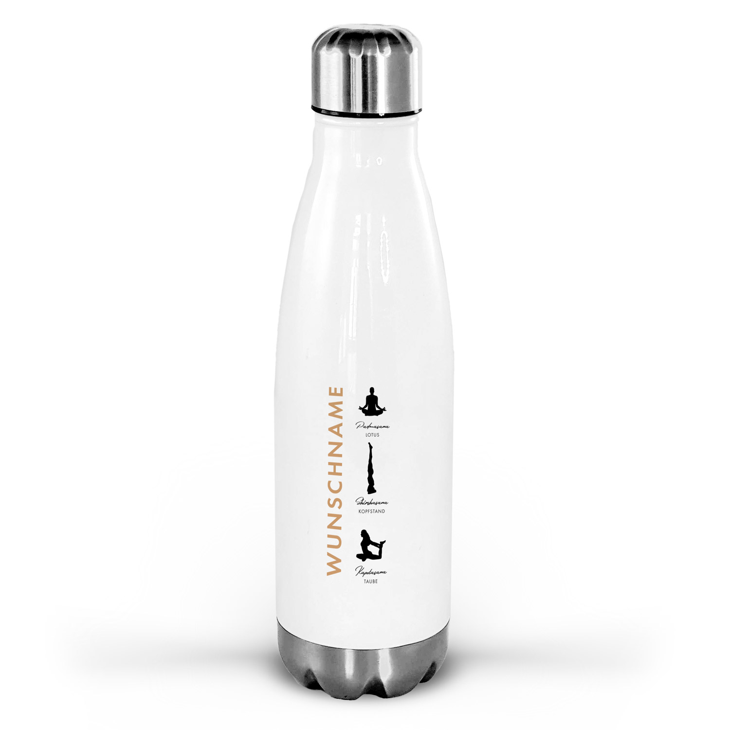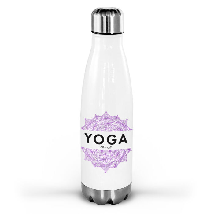 Hochwertige Thermosflasche aus Edelstahl mit Yoga Mandala Motiv. Auf Wunsch personalisierbar.