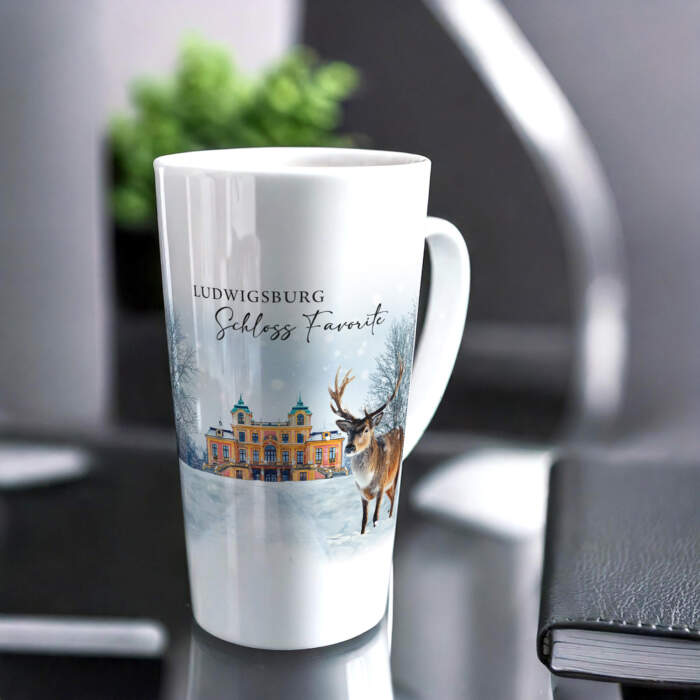 Einfach eine tolle Geschenkidee. Die schöne XXL Wintertasse aus Ludwigsburg mit Wintermotiv des Schloss Favorite. Tasse für Kollege, Kollegin, Freund oder Freundin, als besonderes Geschenk.